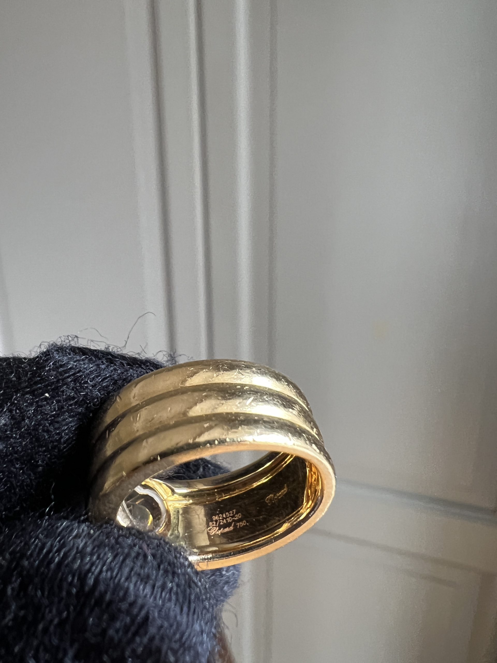 Bague Chopard en or jaune et diamant. Quelques griffures. Gravée à l’intérieur.