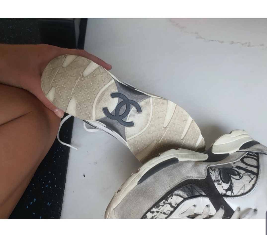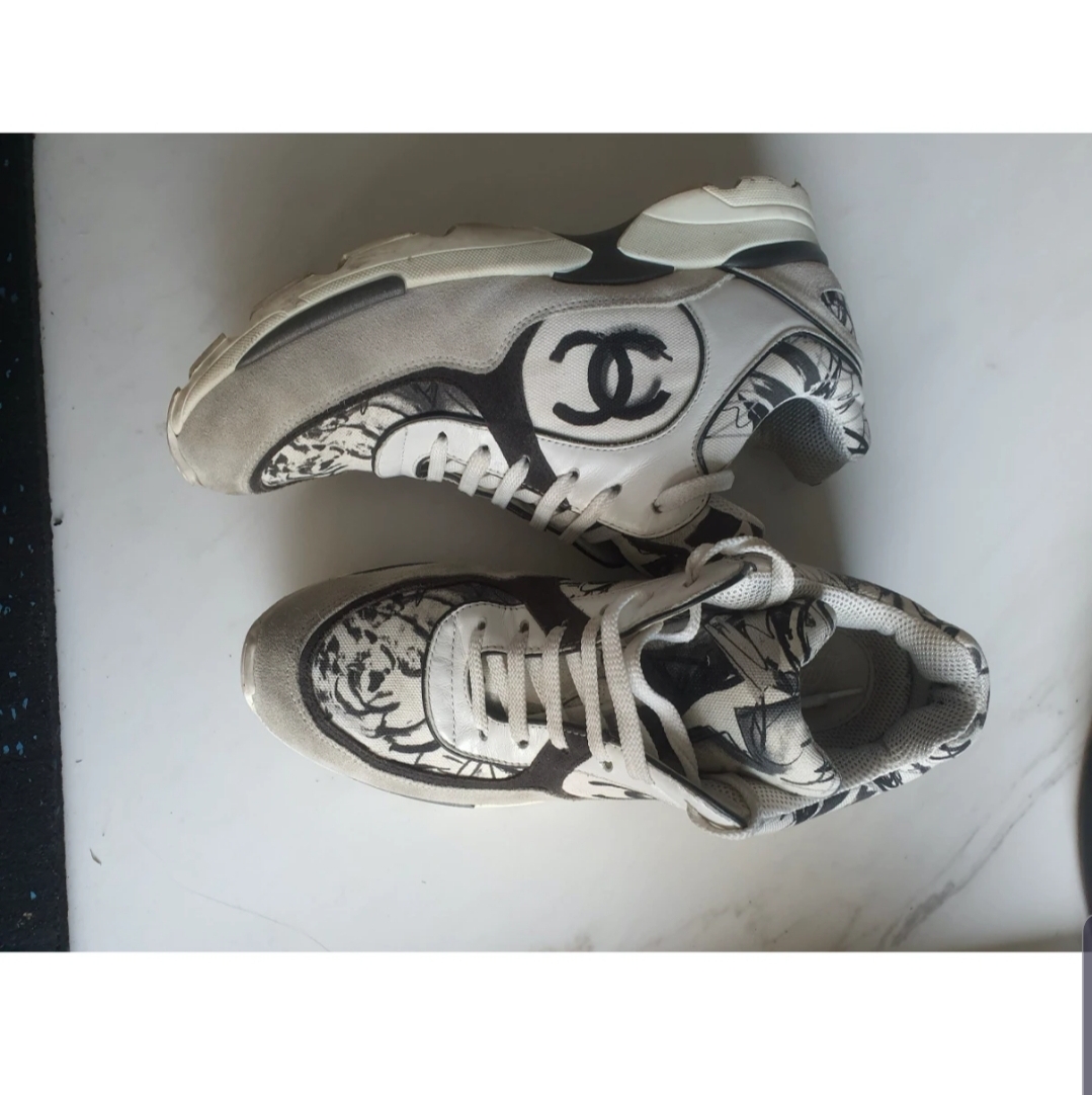 Basket chanel en toile et daim
