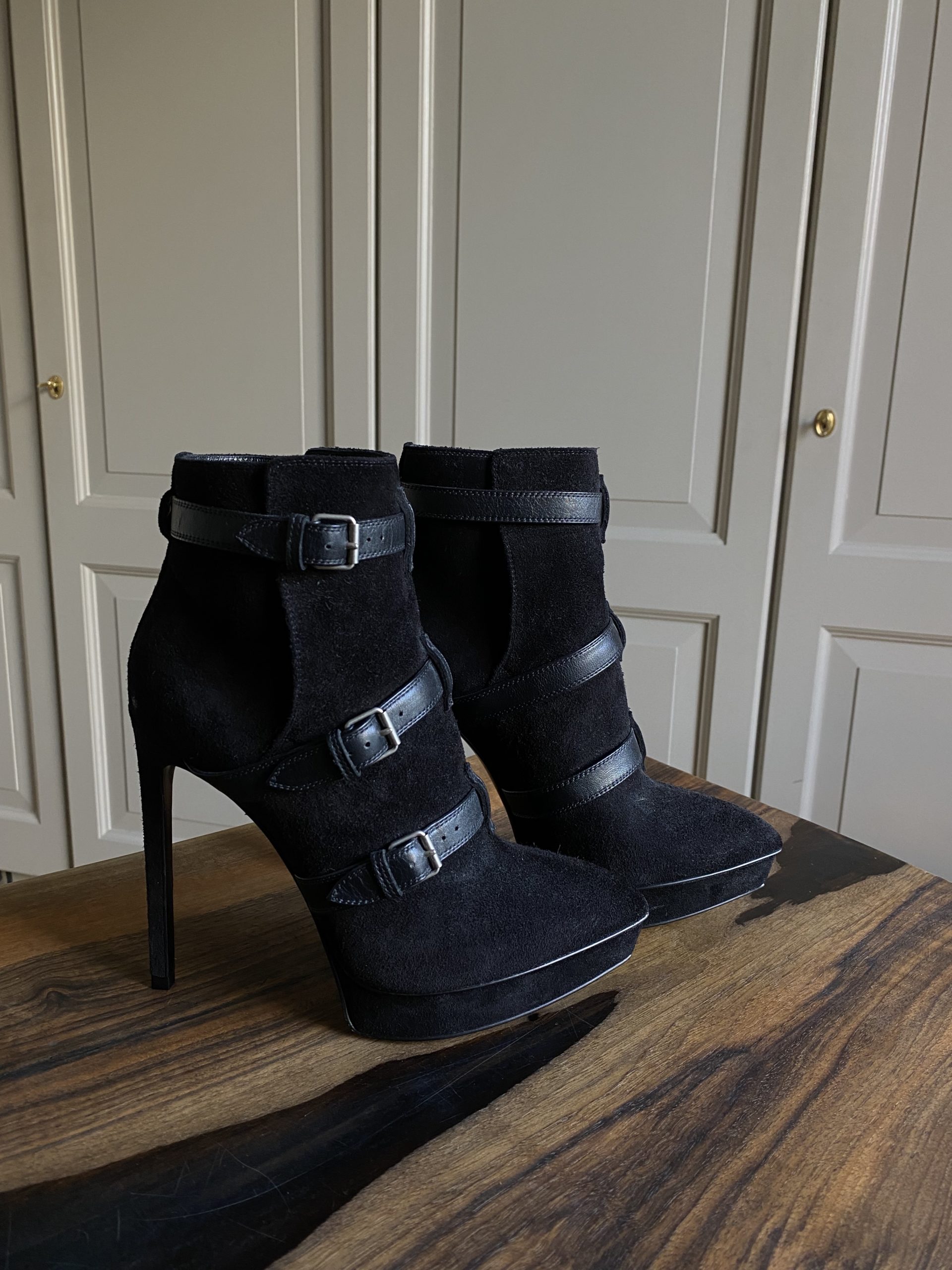Bottines YSL comme neuves, en daim. Vendu avec dustbag.