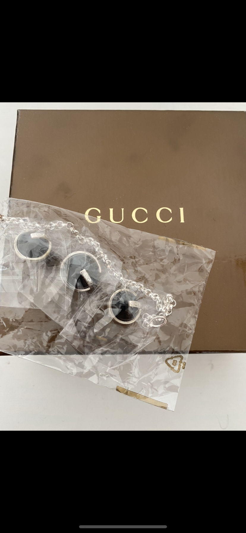 Bracelet Gucci en argent avec 3 pendentifs en boule noir