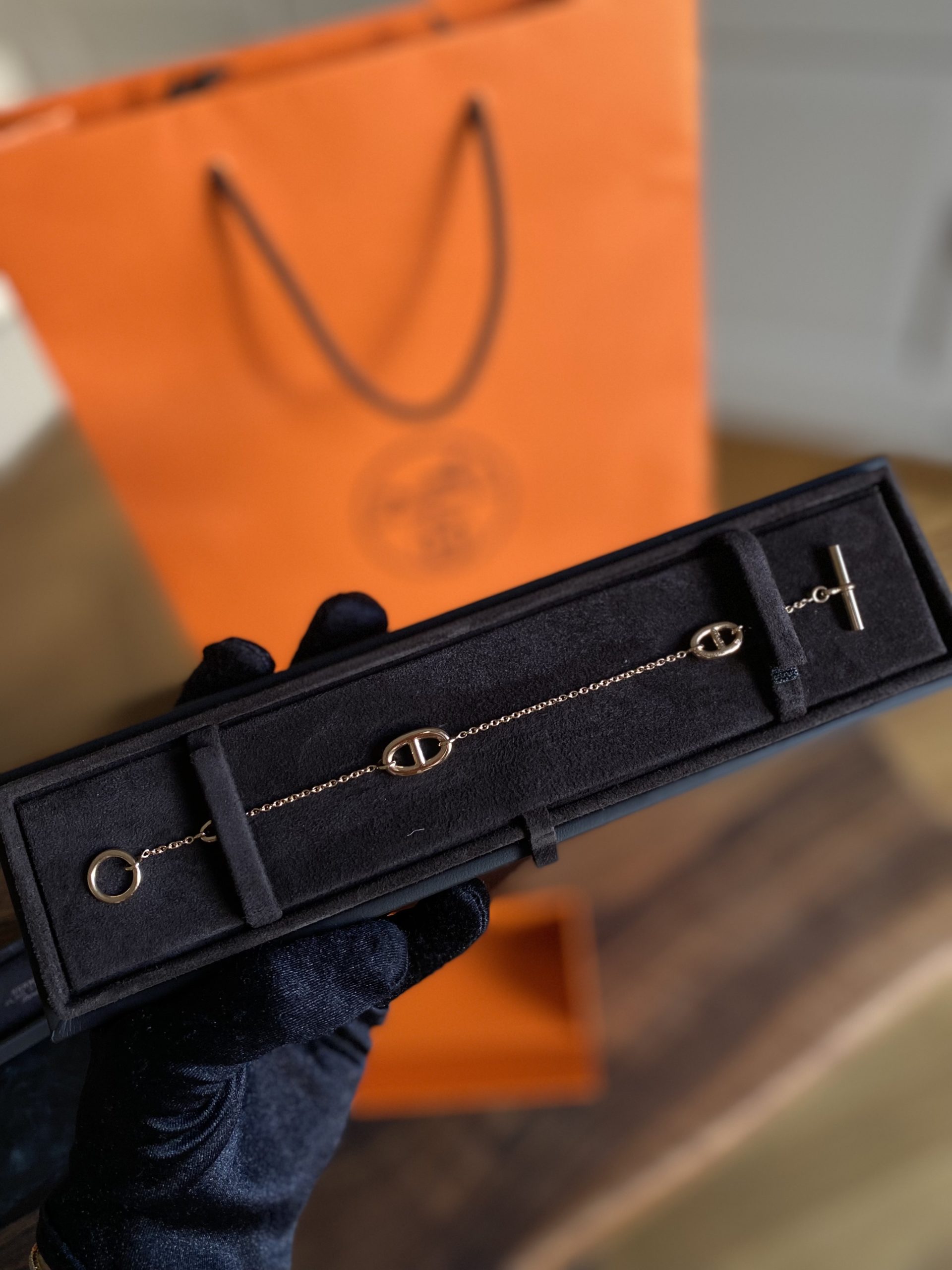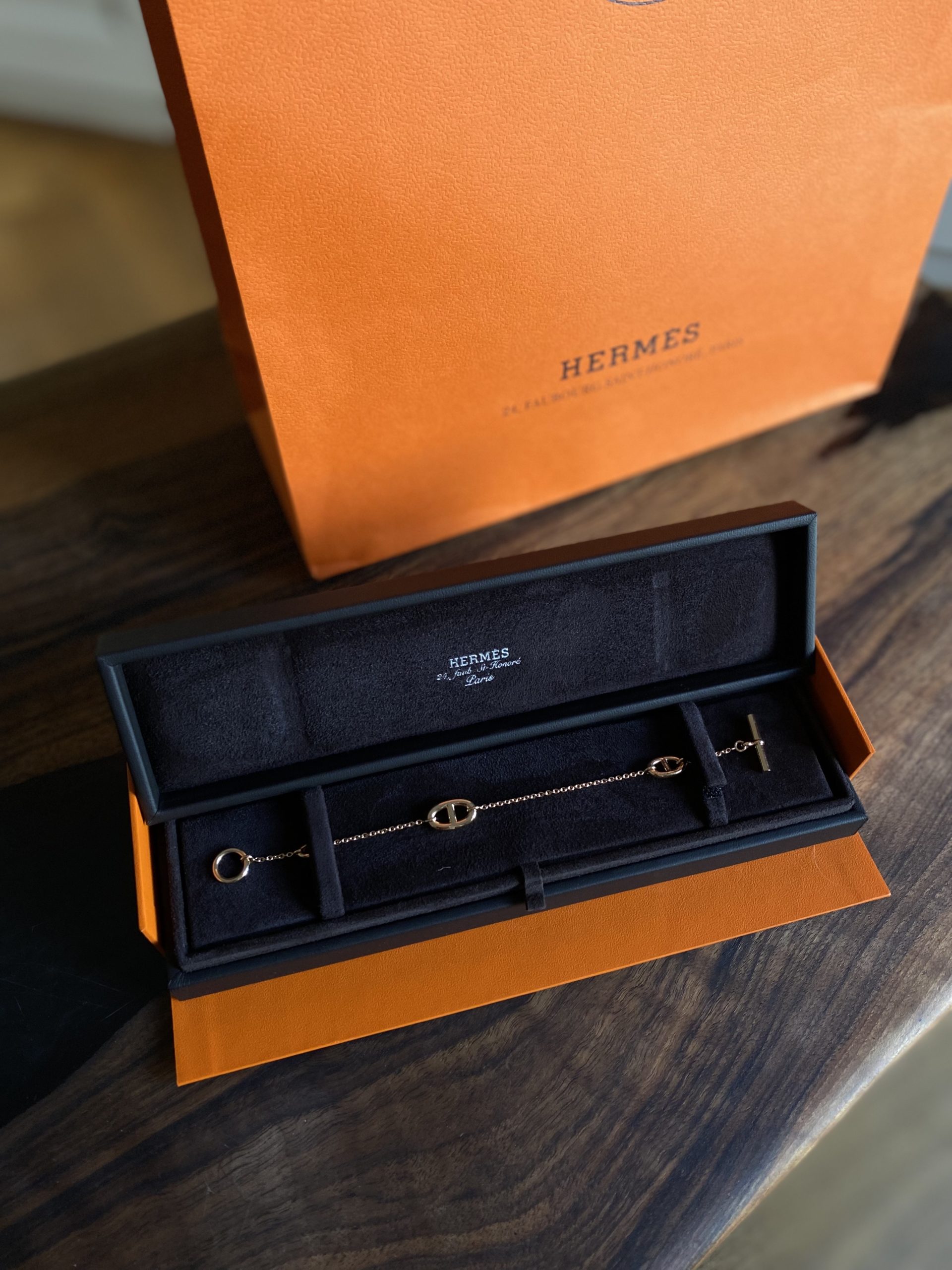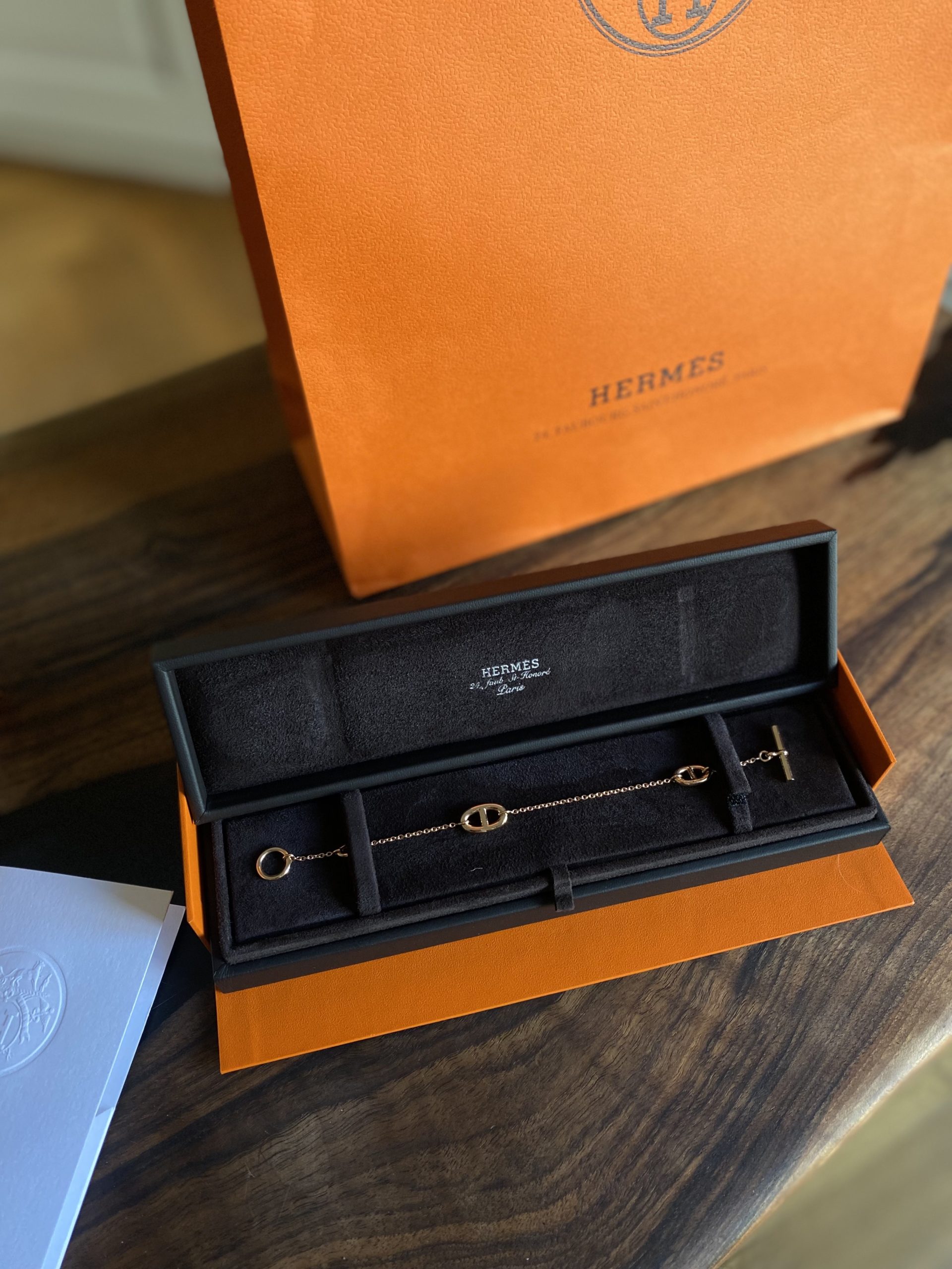 Bracelet Hermès en or rose. Vendu avec copie de la facture, boite. Neuf.
