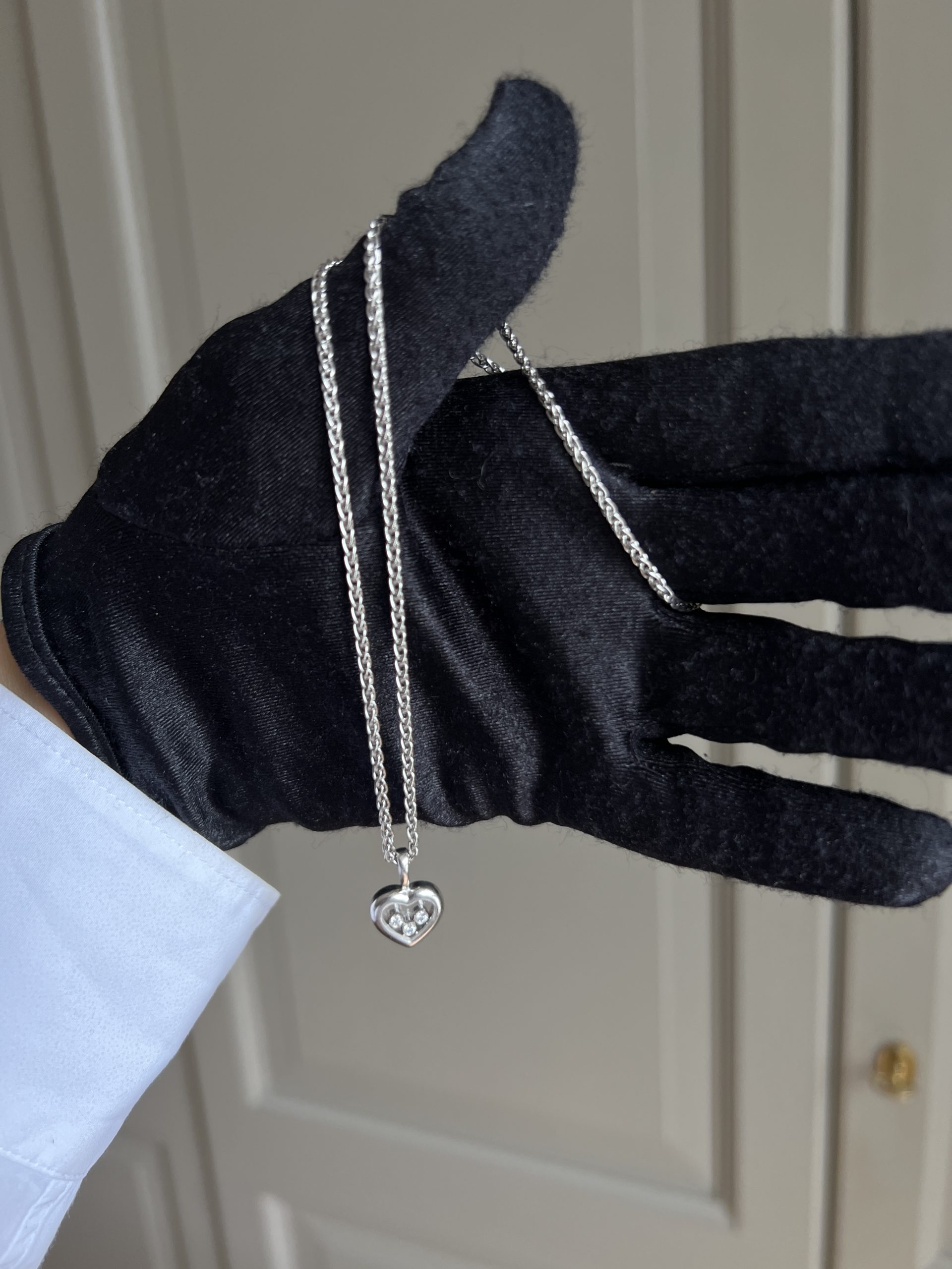 Collier Chopard. Faibles griffures. Or blanc et diamants.