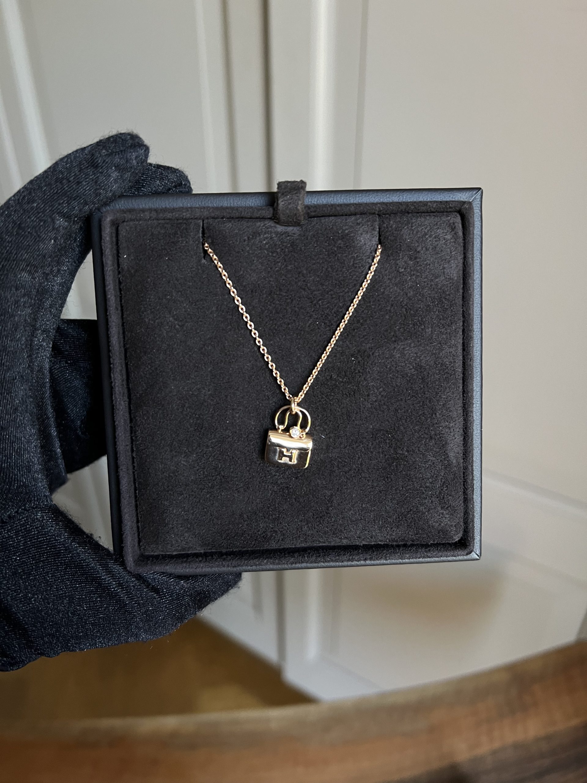 Collier Hermès en Or rose avec diamant. En bon état vendu avec boîte.