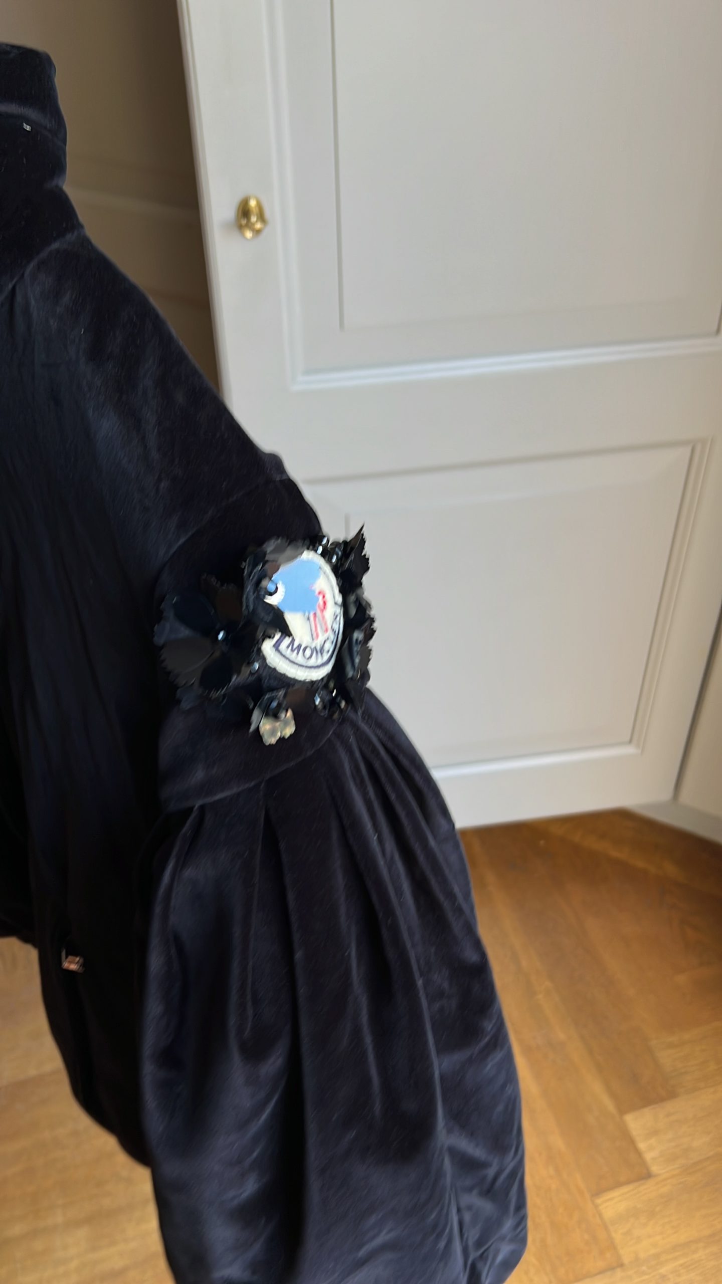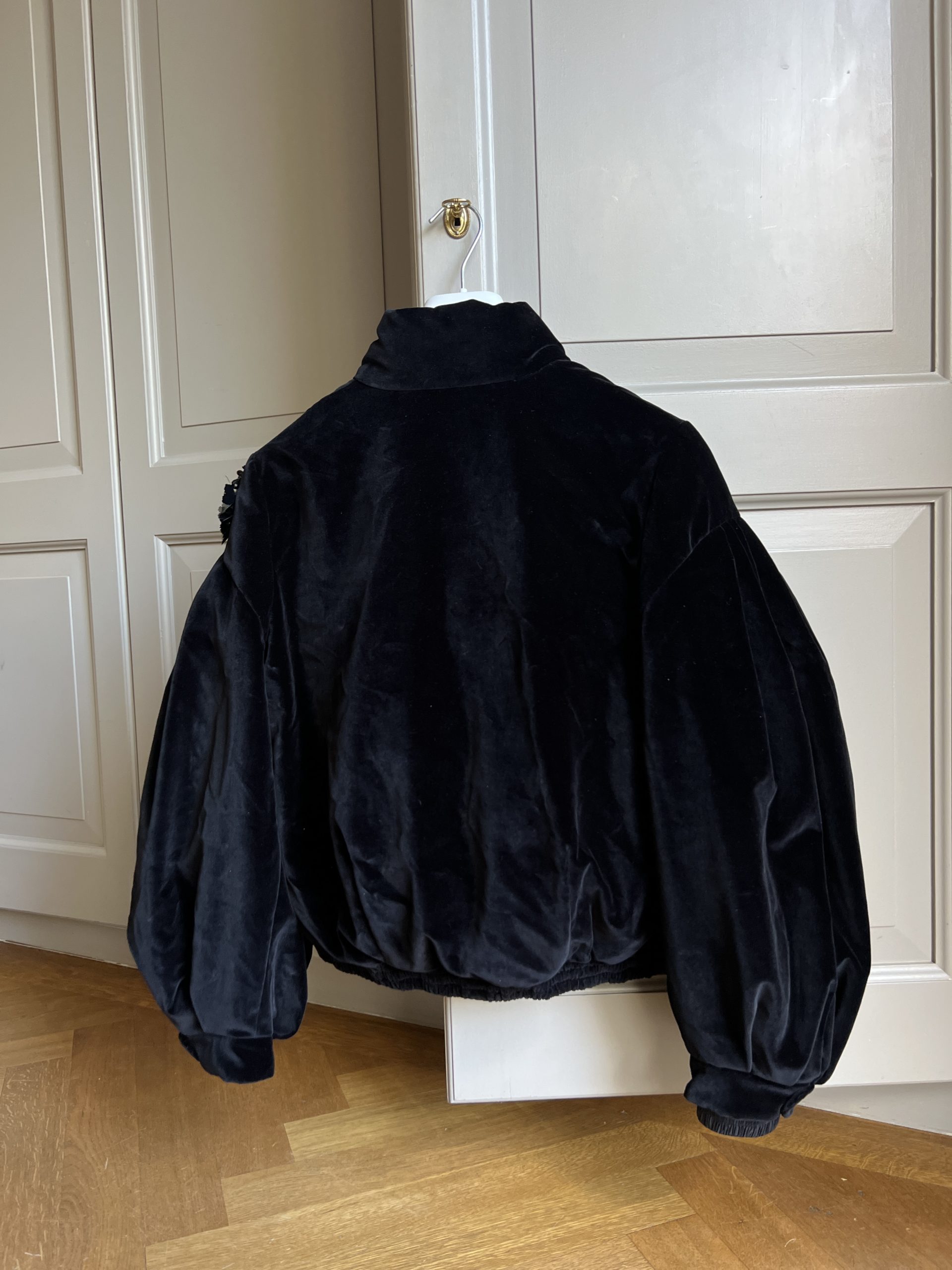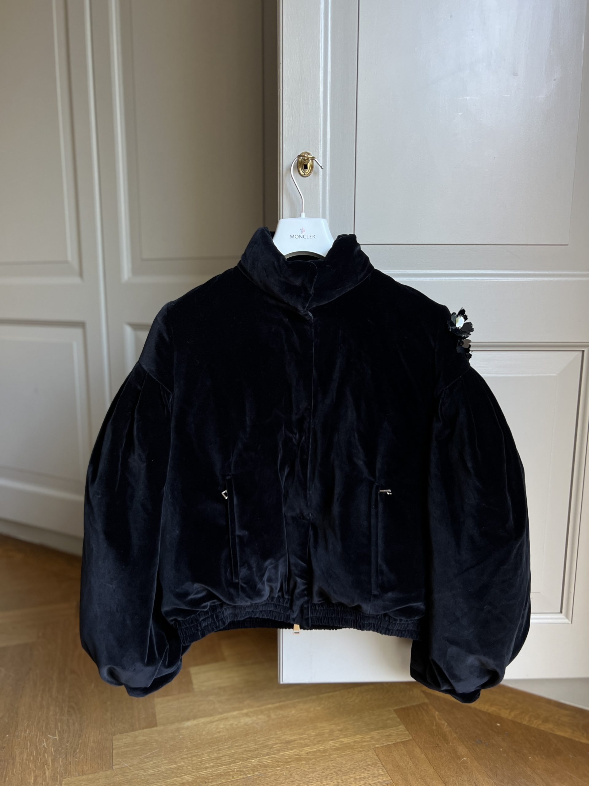 Doudoune Moncler en velours. Vendu avec ceinture.