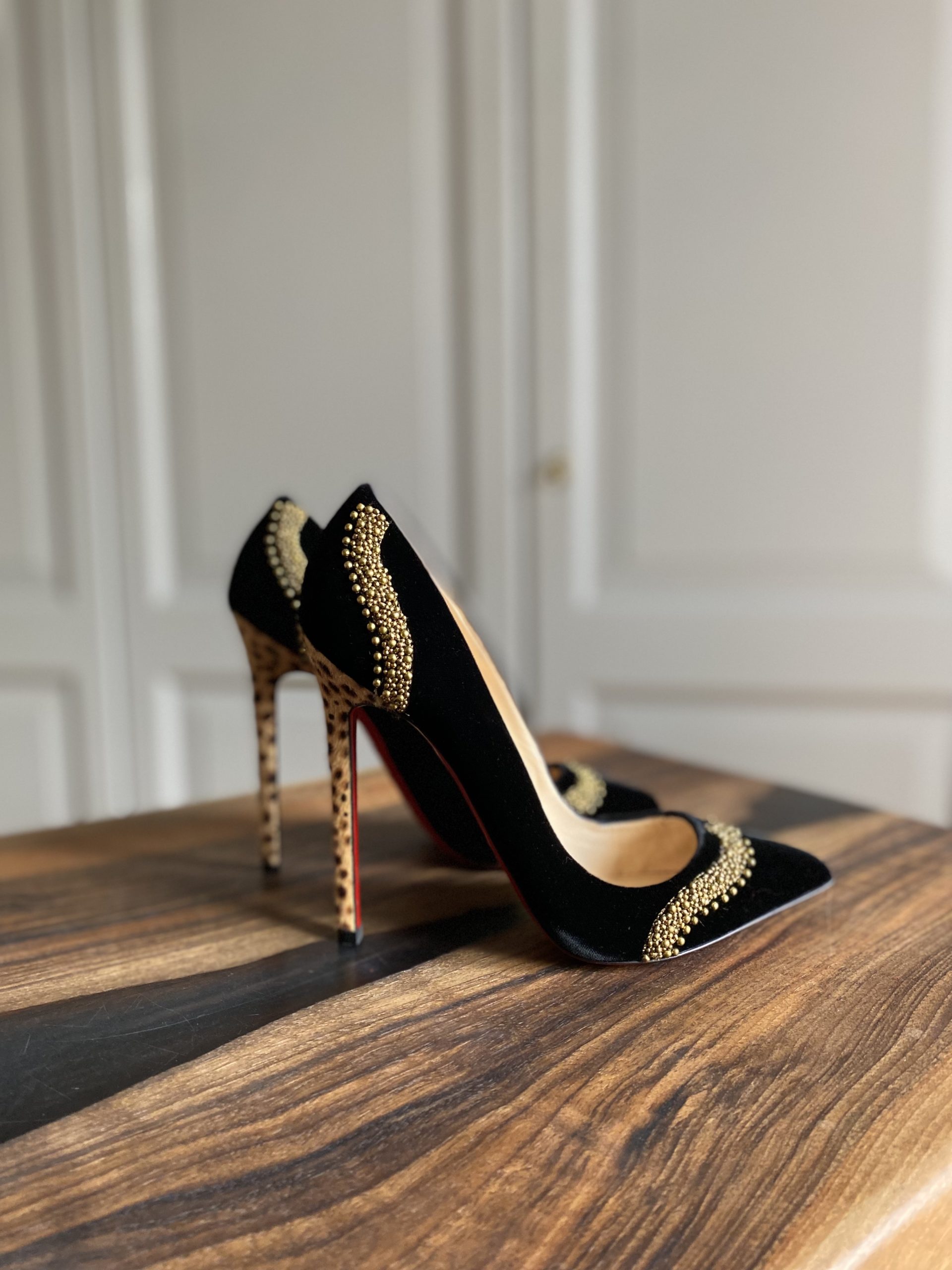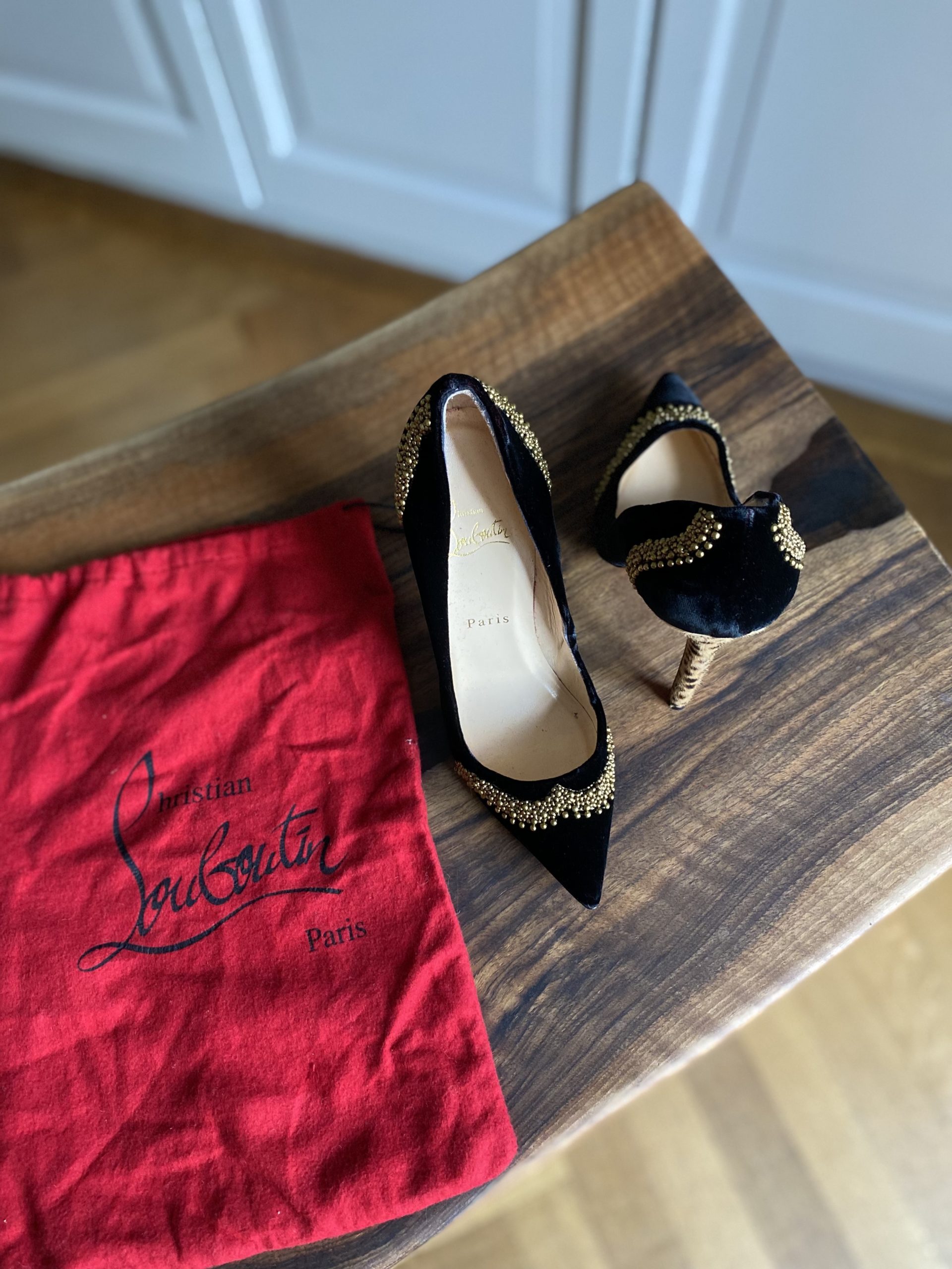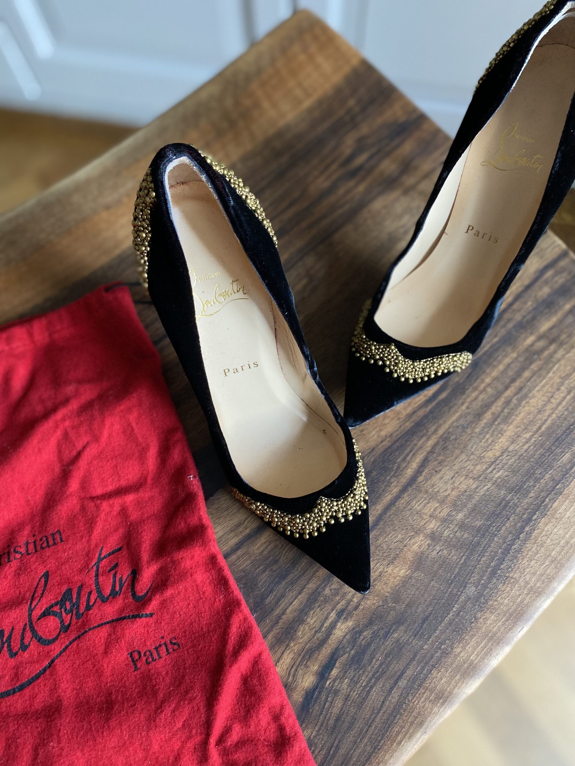 Escarpins Christian Louboutin en très bon état, en velours. Vendu avec un dustbag.
