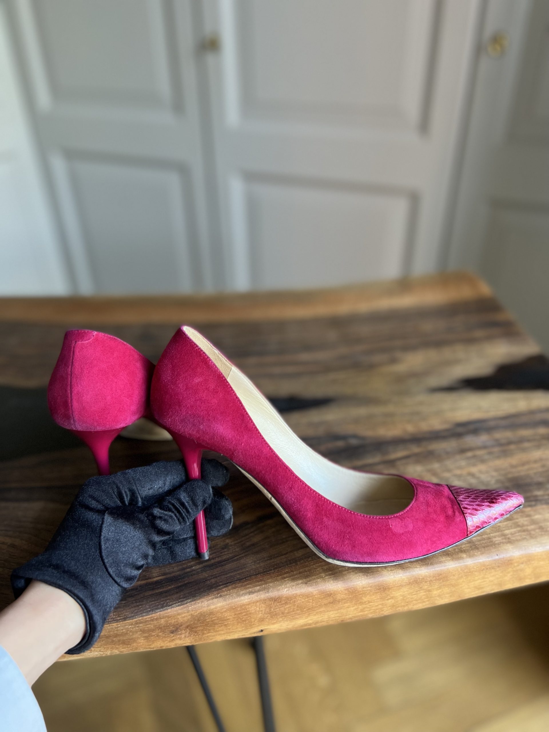 Escarpins Jimmy Choo. Signes d’usure.