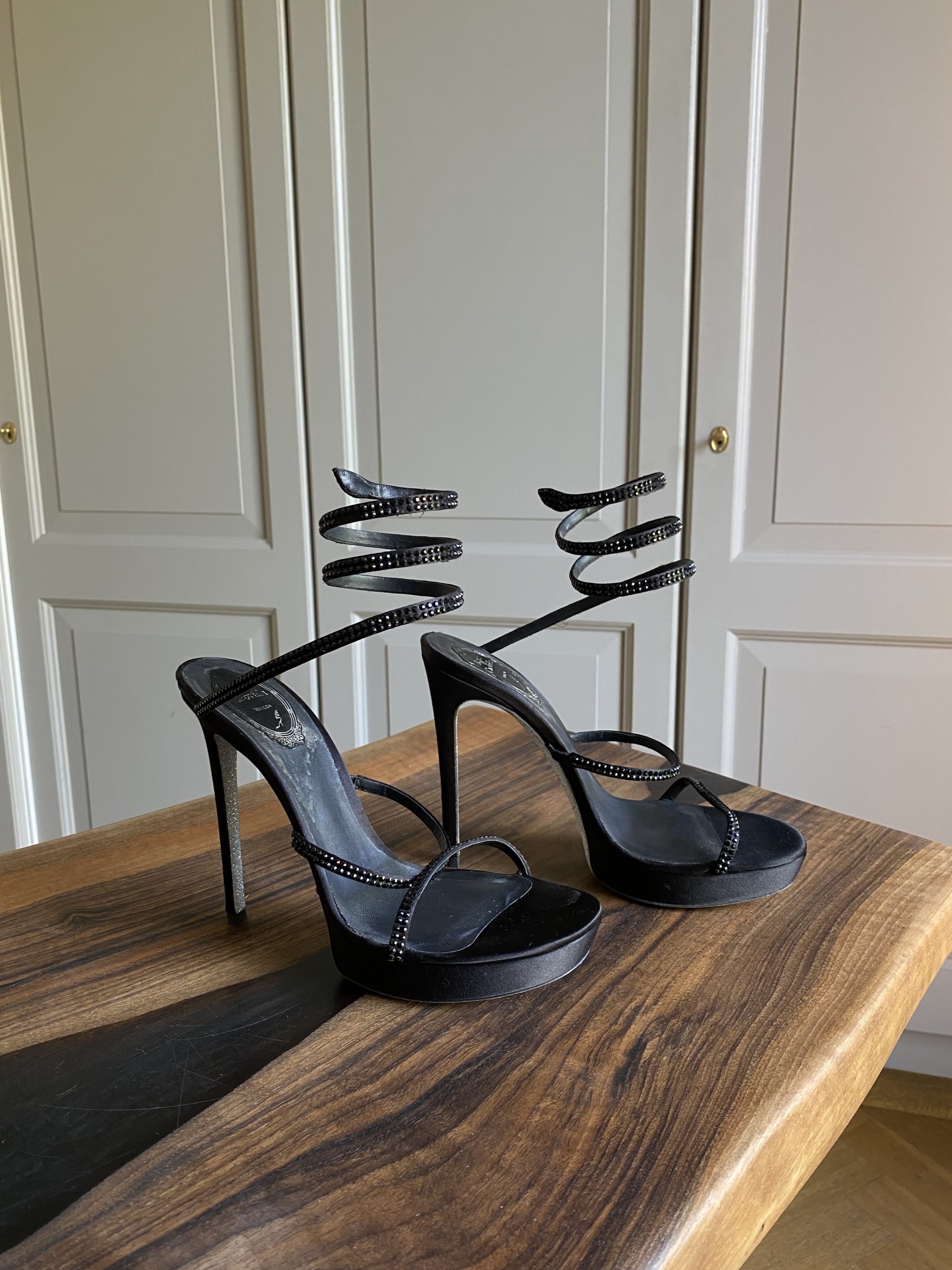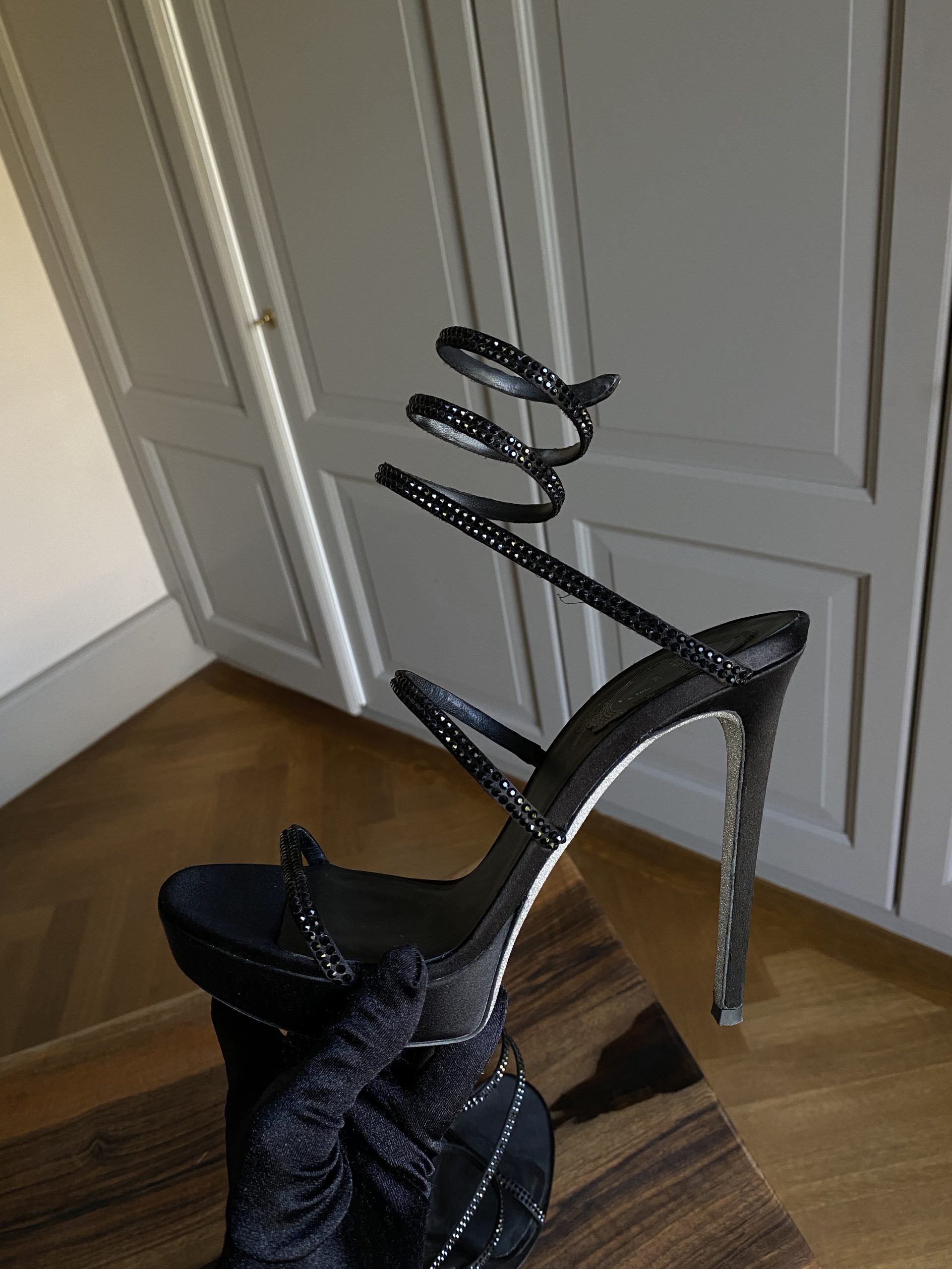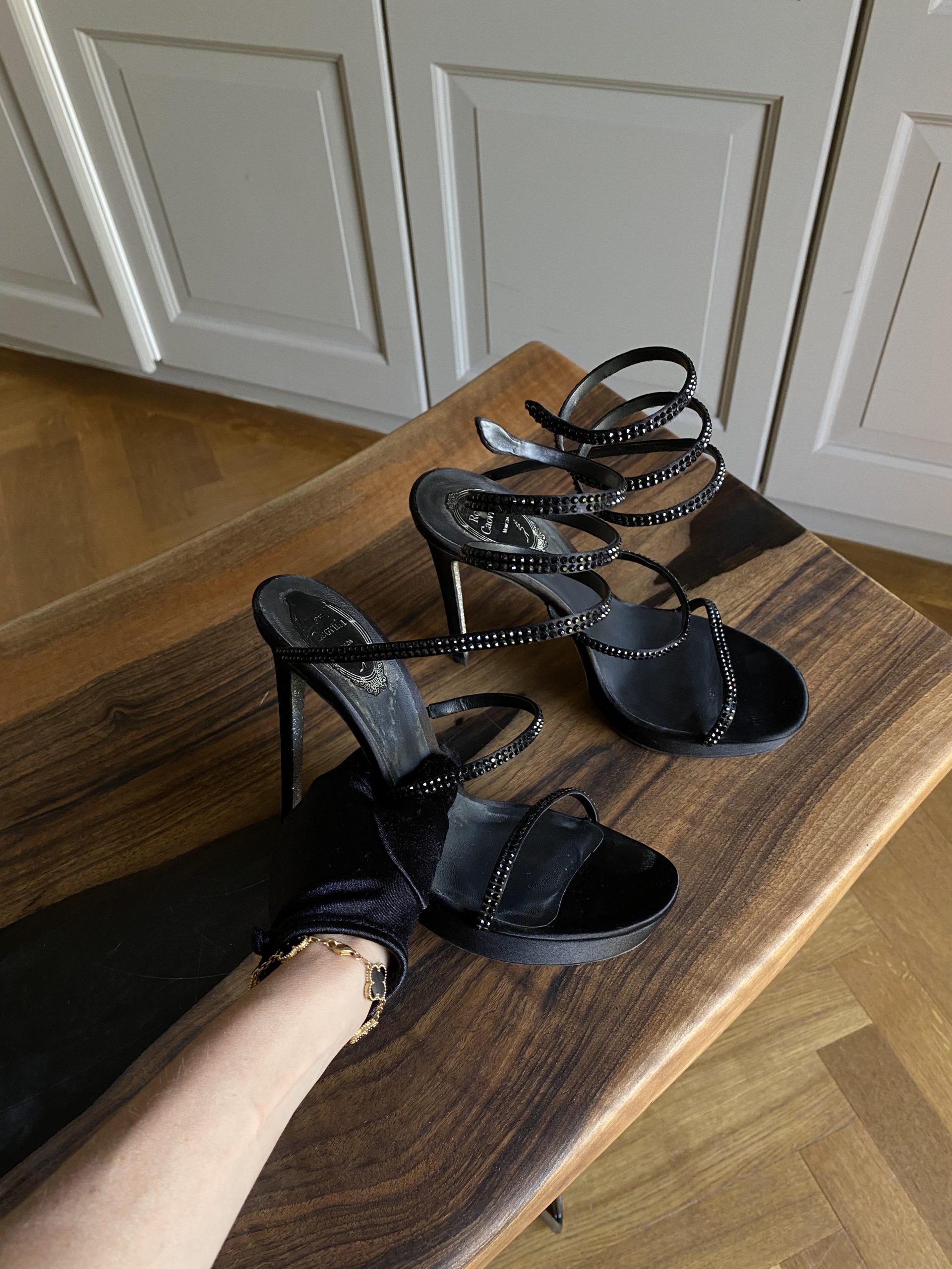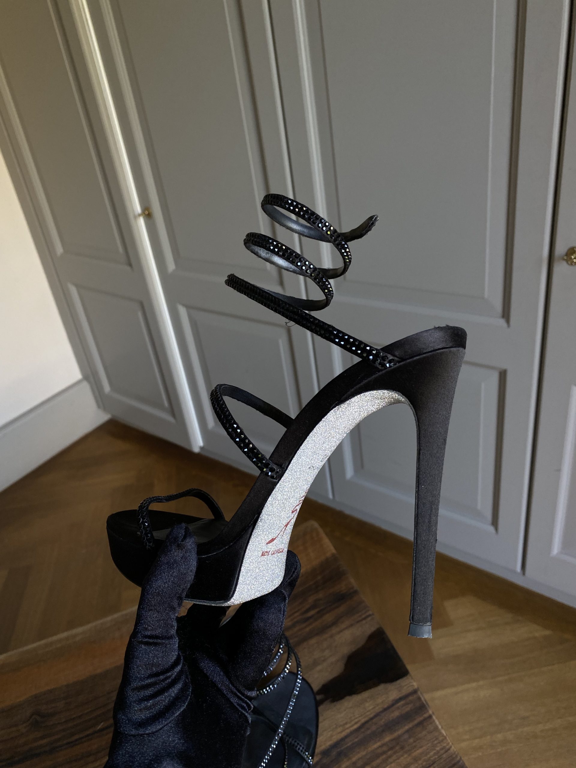 Escarpins René Caovilla en bon état. Signes d’usure sur semelle intérieure.