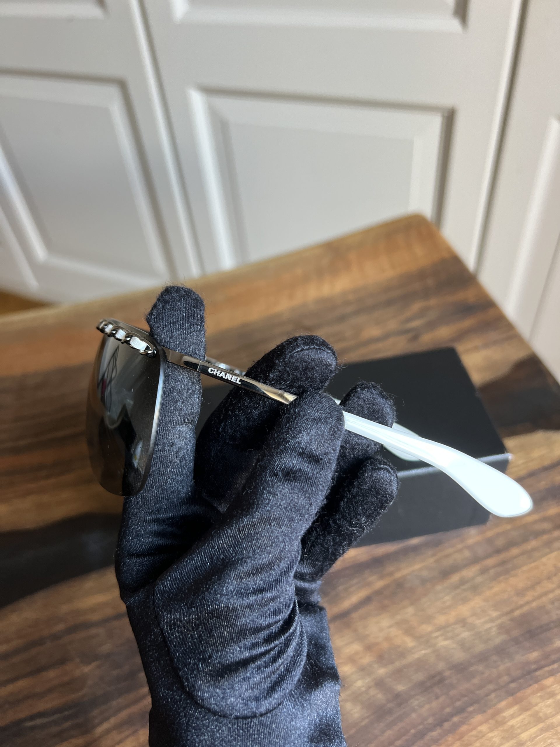 Lunettes de soleil Chanel. Vendu avec écrin + boîte.