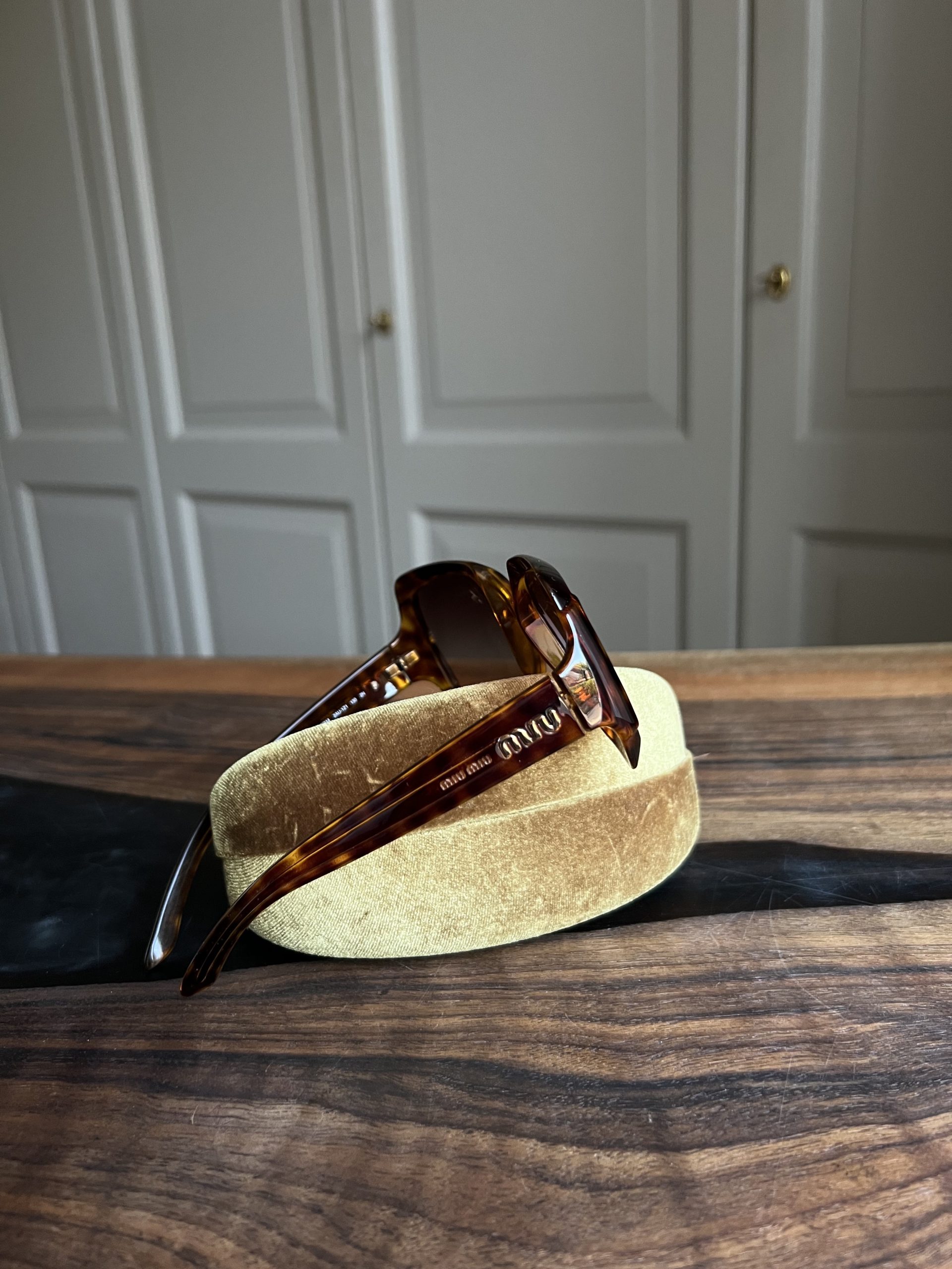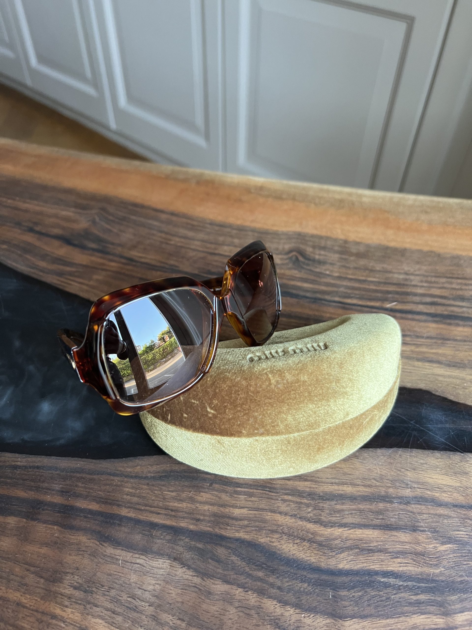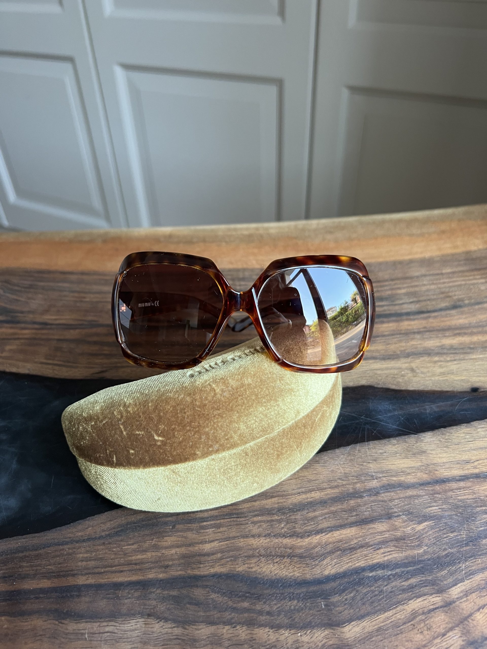 Lunettes de soleil MiuMiu vendu avec étui. Une petite rayure.