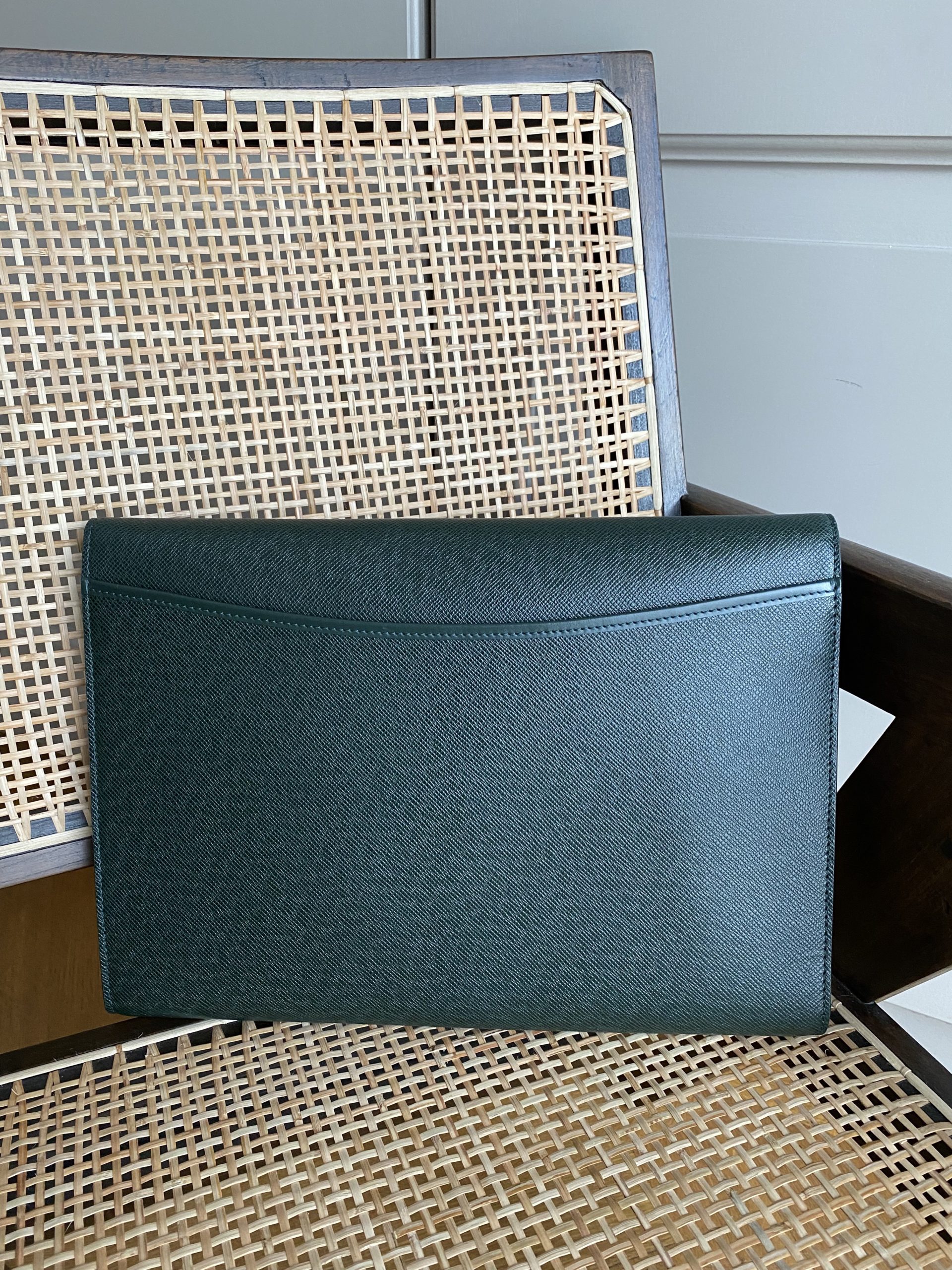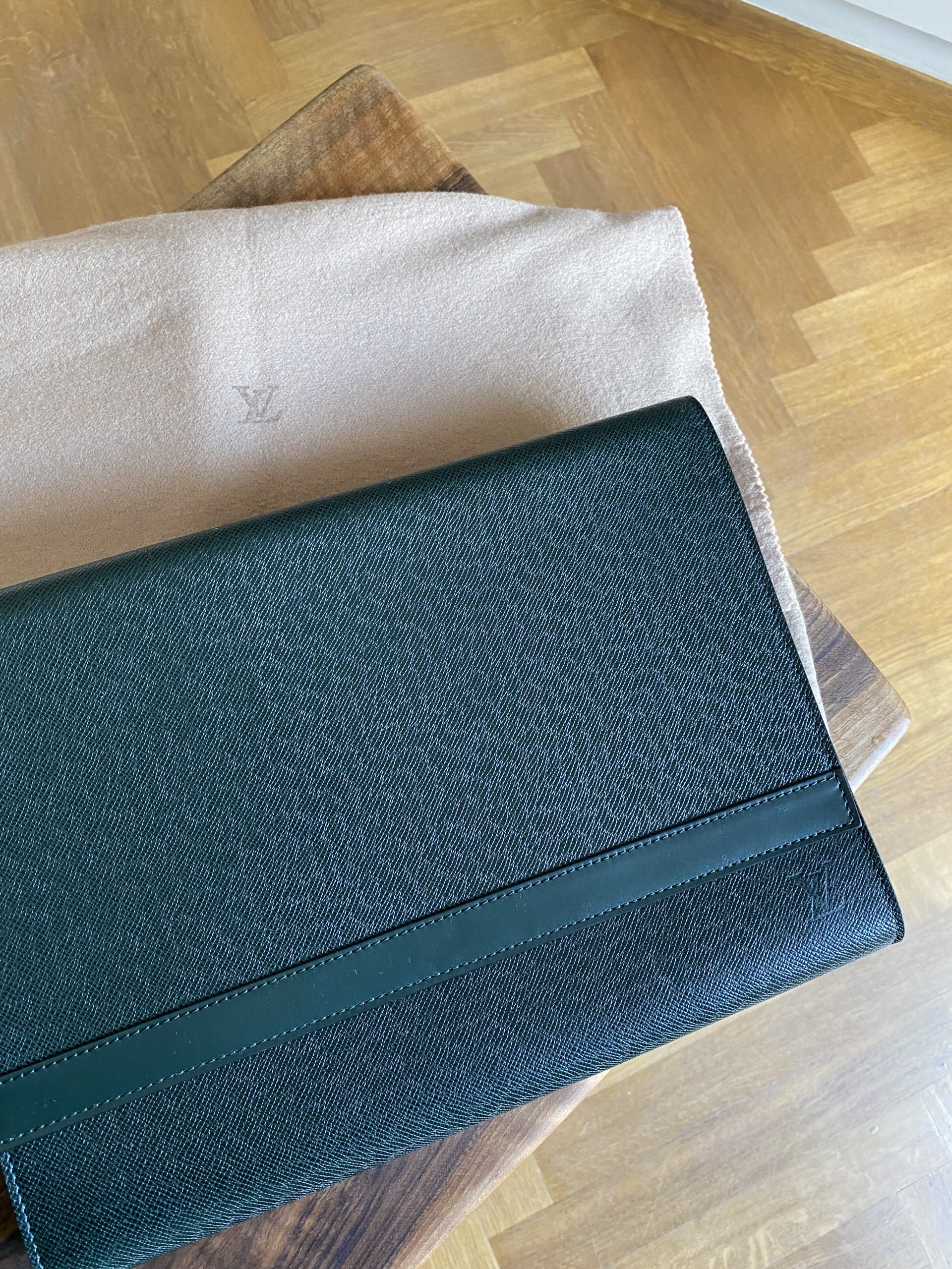 Pochette Louis Vuitton Vintage en très bon état extérieur. A l’intérieur le cuir est craquelé mais n’est pas visible. Vendu avec dustbag.
