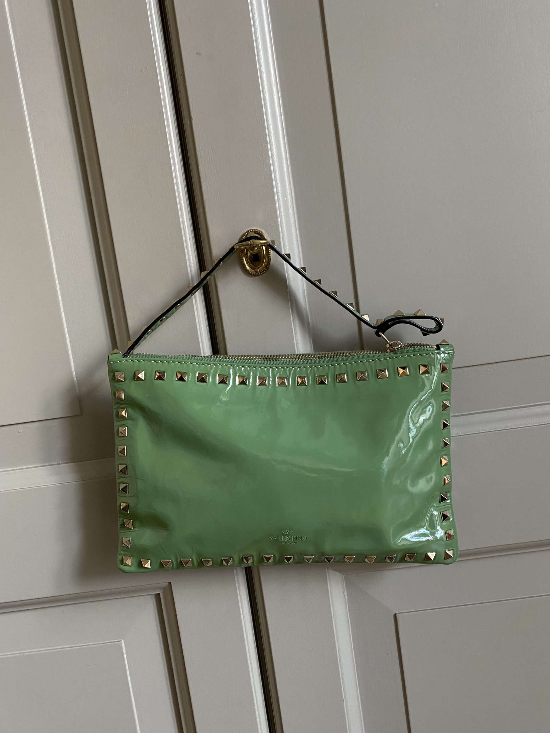 Pochette Valentino en cuir verni en excellent état. Vendu avec dustbag.