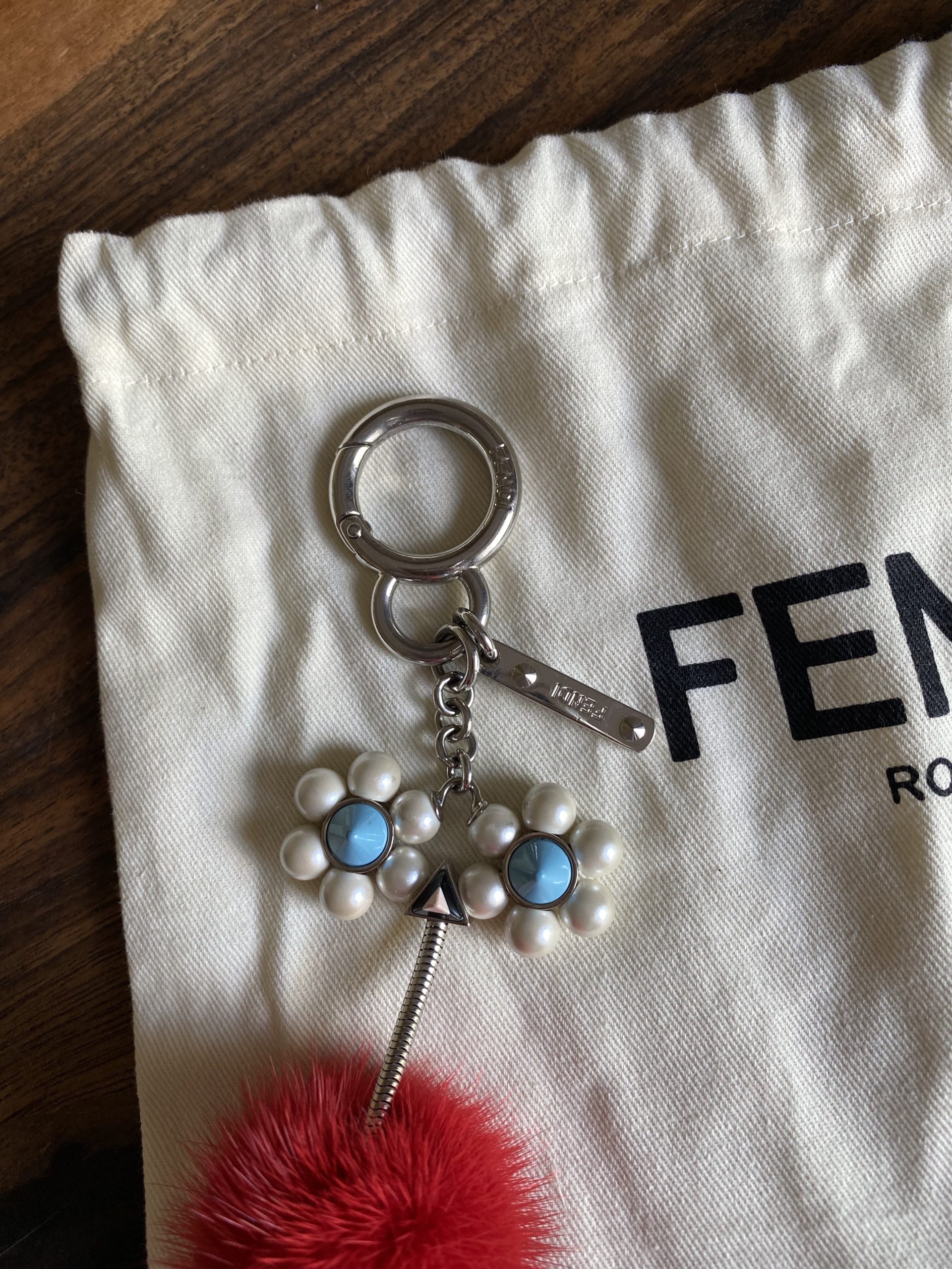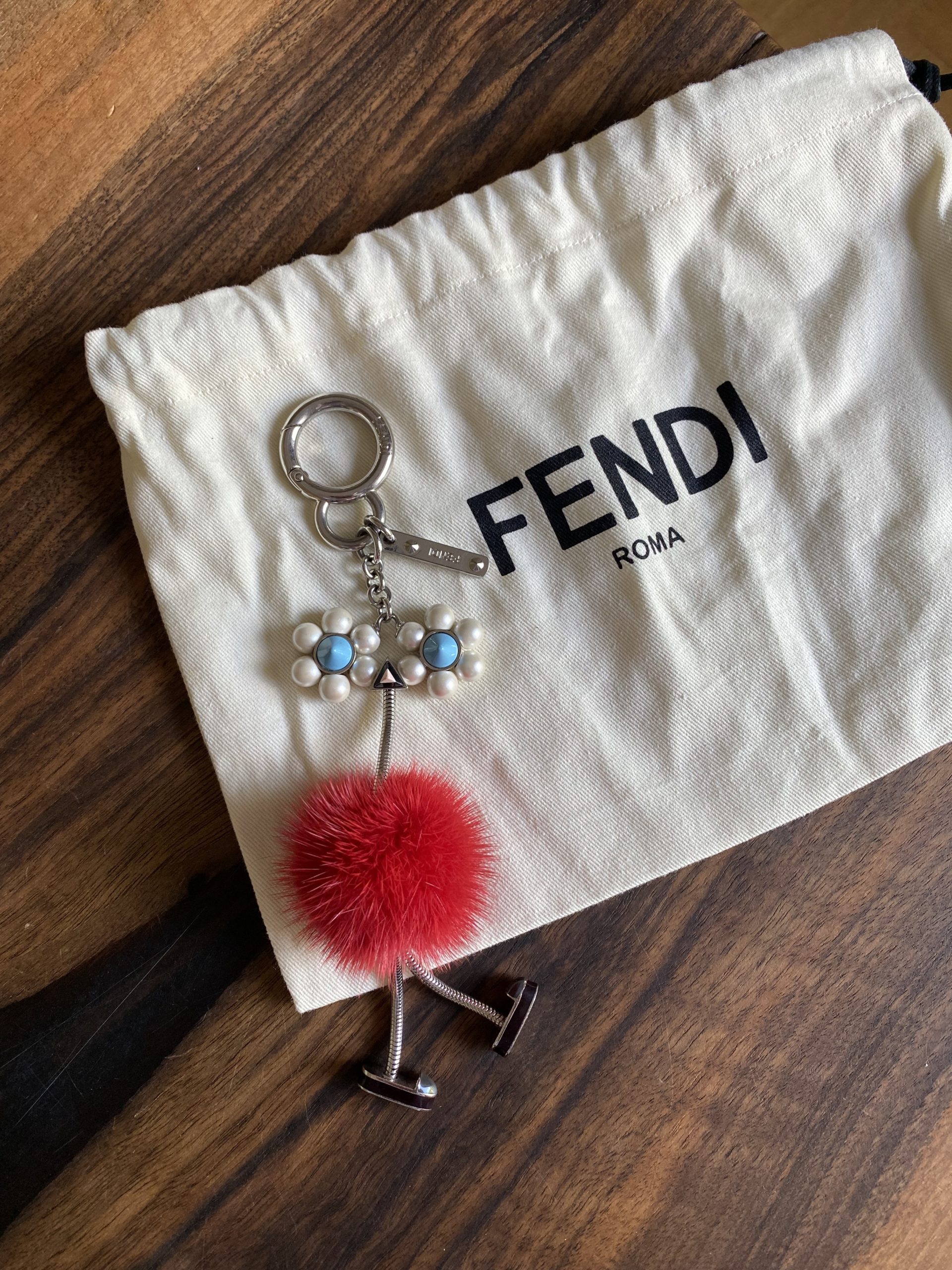 Porte-clés Fendi en très bon état. En fourrure et métal.