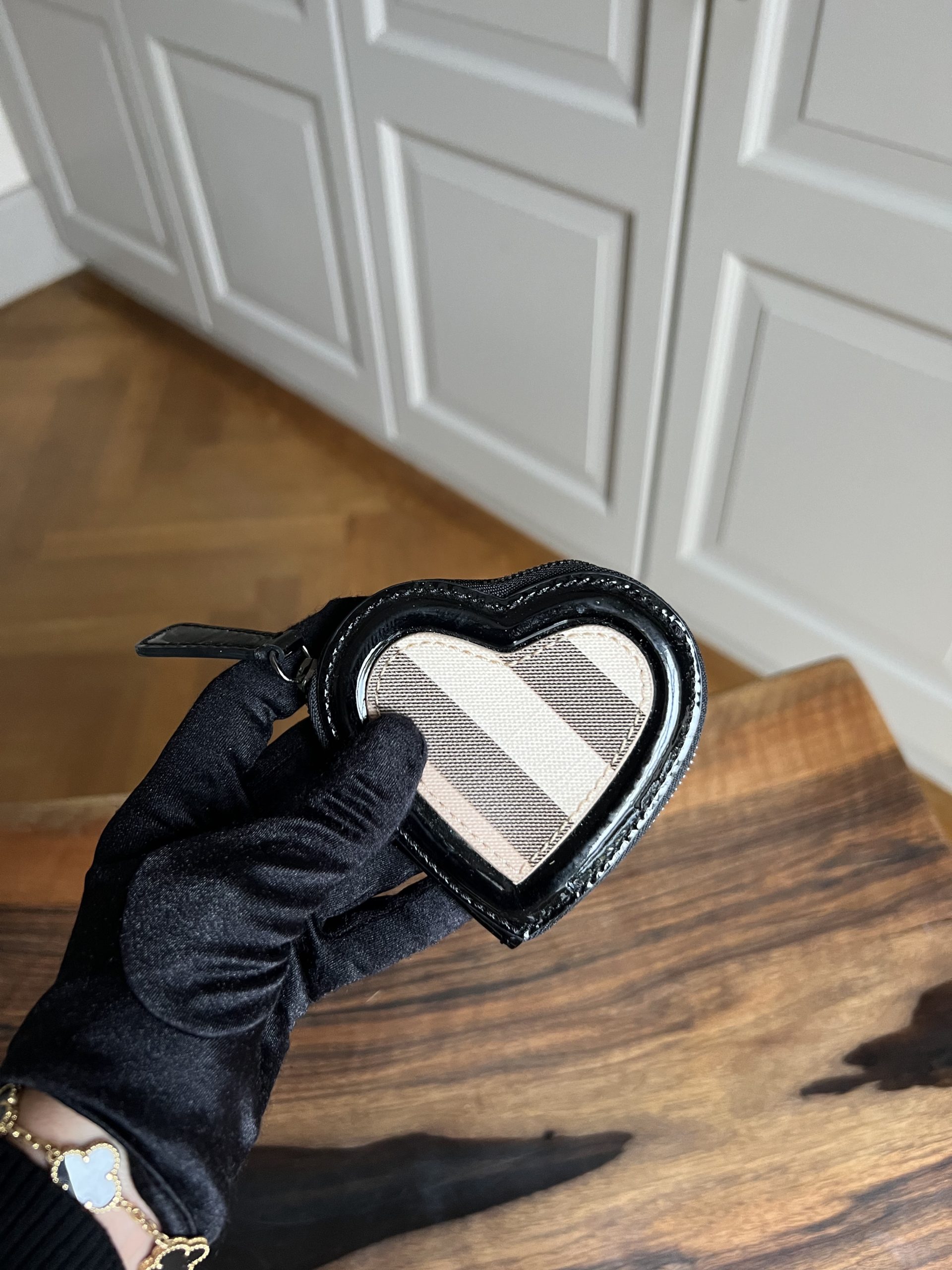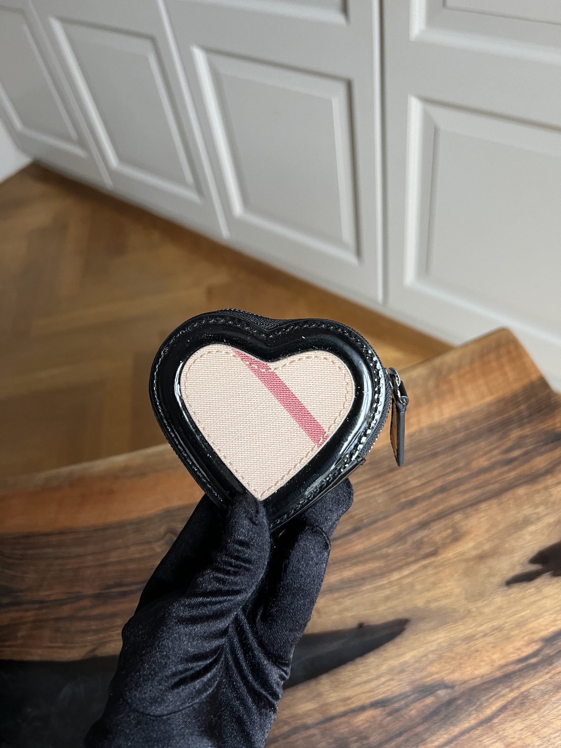 Porte-monnaie Burberry en forme de coeur, en bon état.