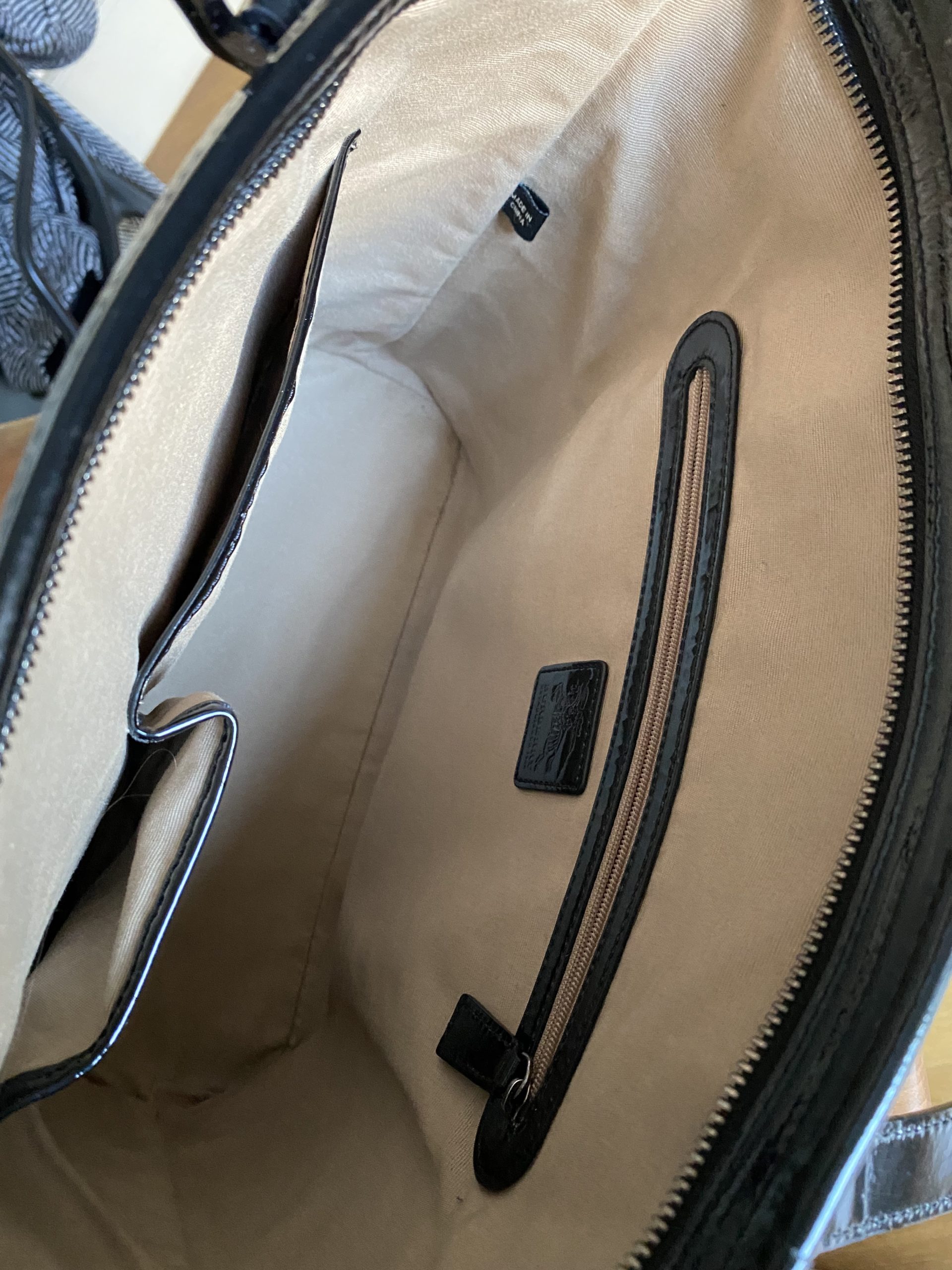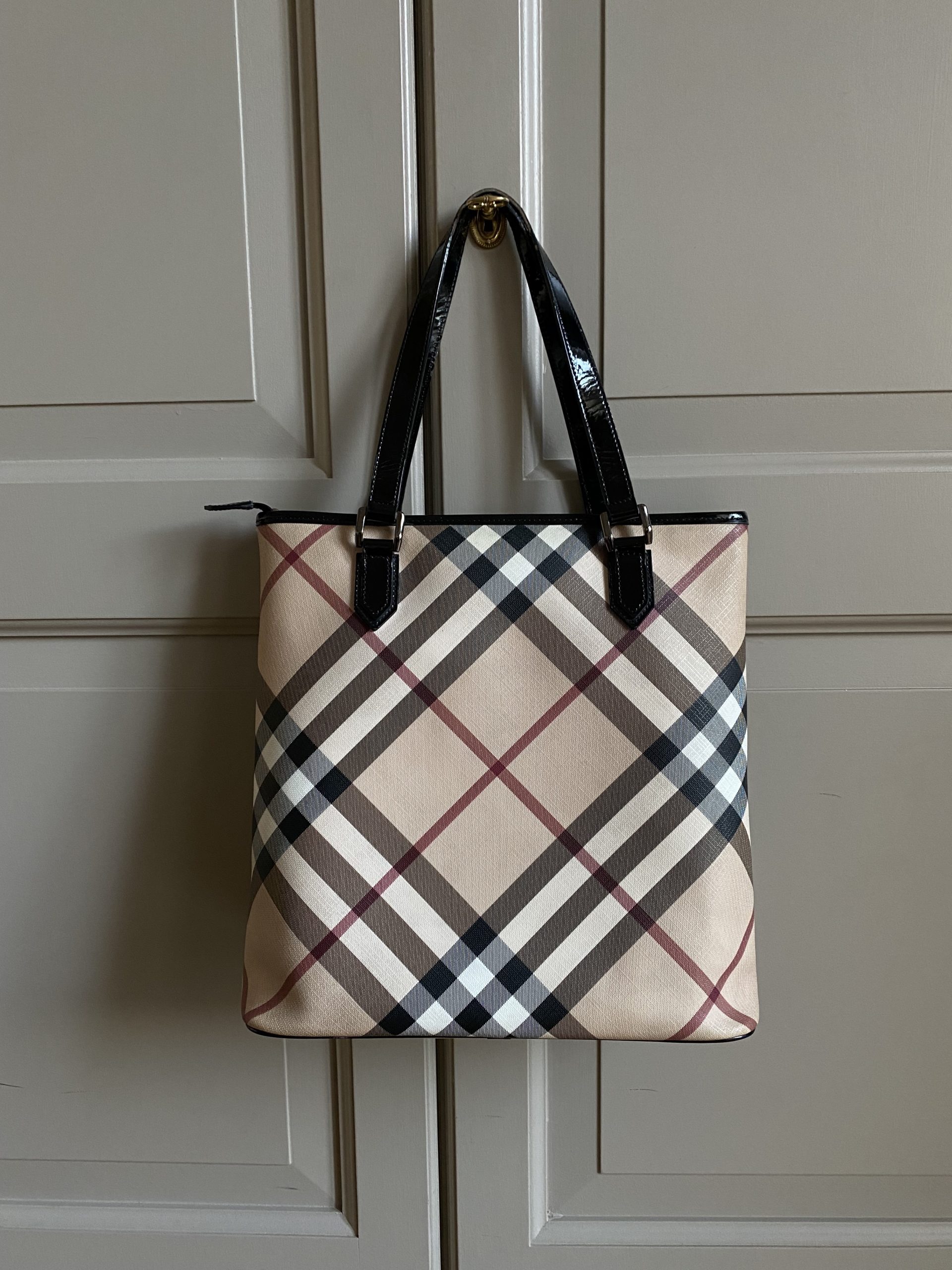 Sac Burberry en bon état extérieur, anses vernies usées.