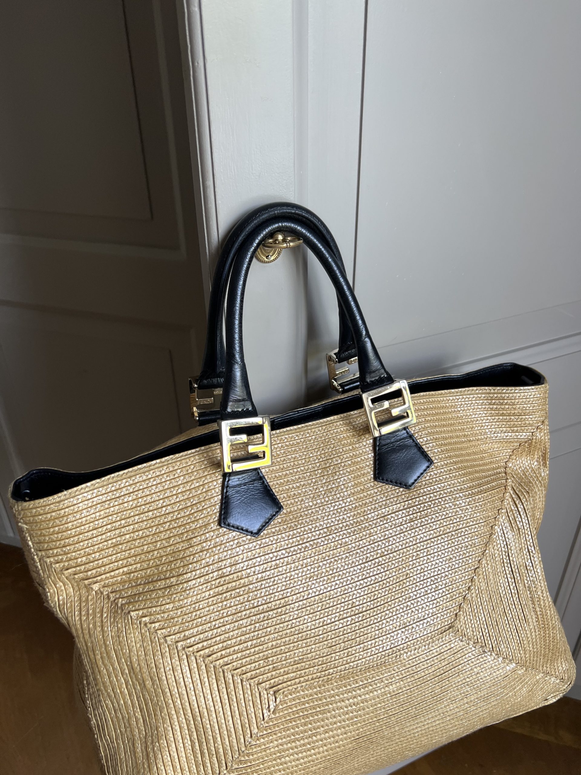 Sac Fendi vintage en raphia. Vendu avec dustbag. Bandoulière manquante.