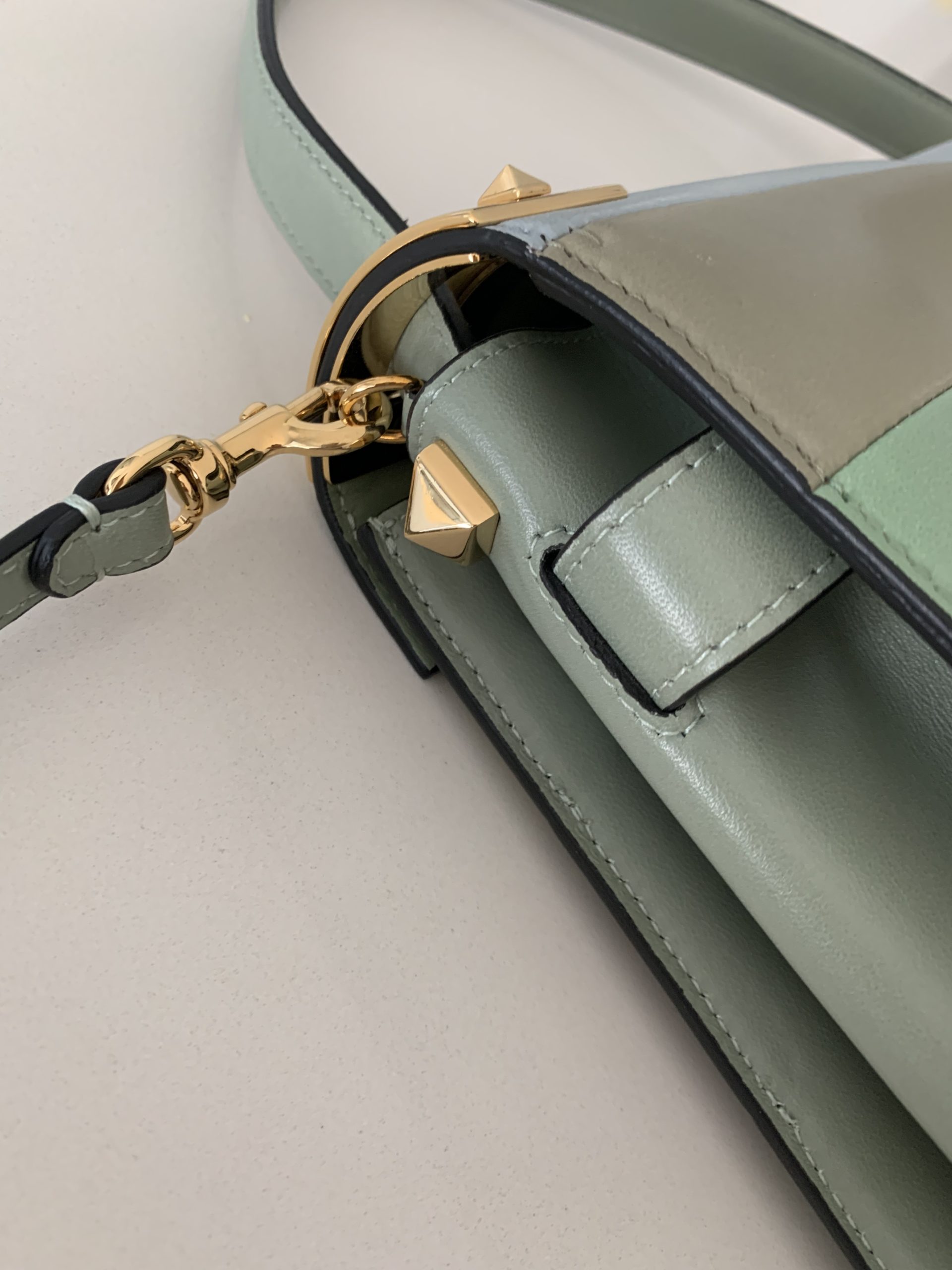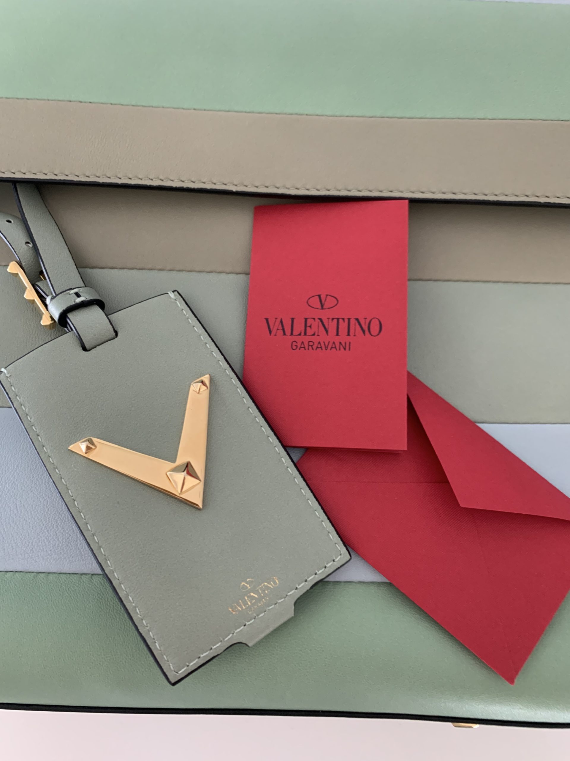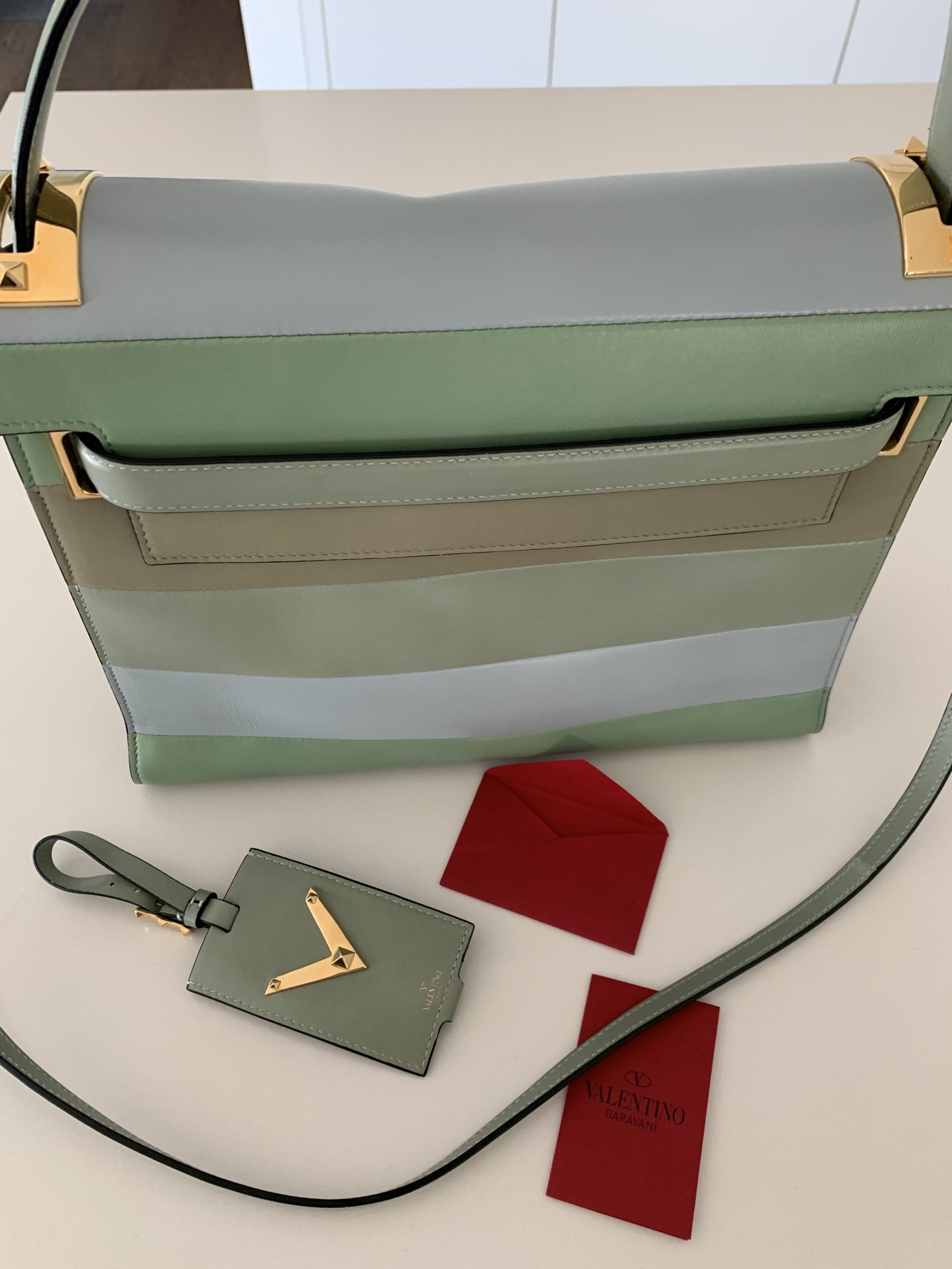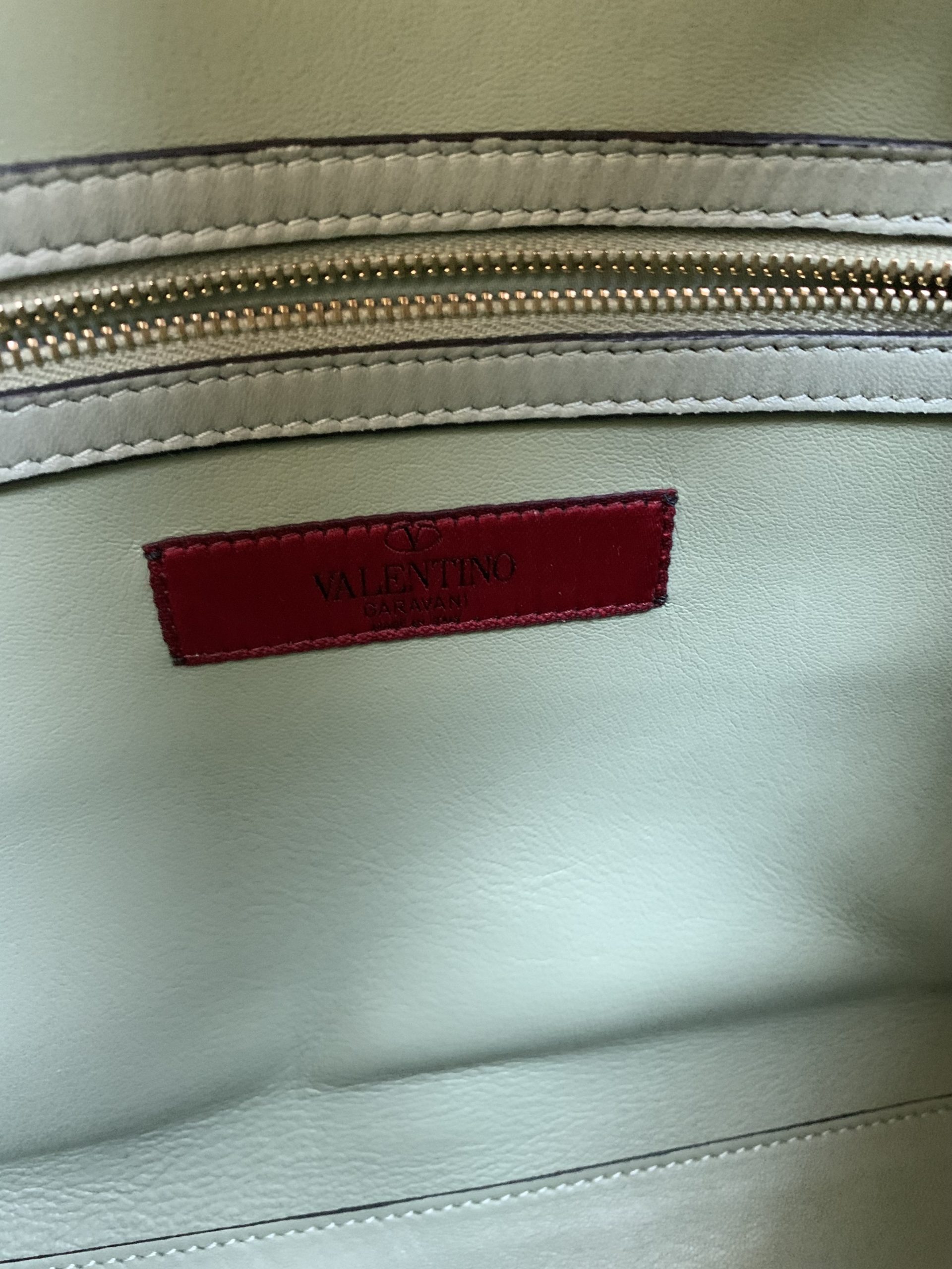 Valentino Garavani My Rockstud neuf, fermeture par rabat, doublure intérieure en cuir, poignée simple et anse amovible permettant un porté main ou épaule, vendu avec porte-nom détachable et dustbag.