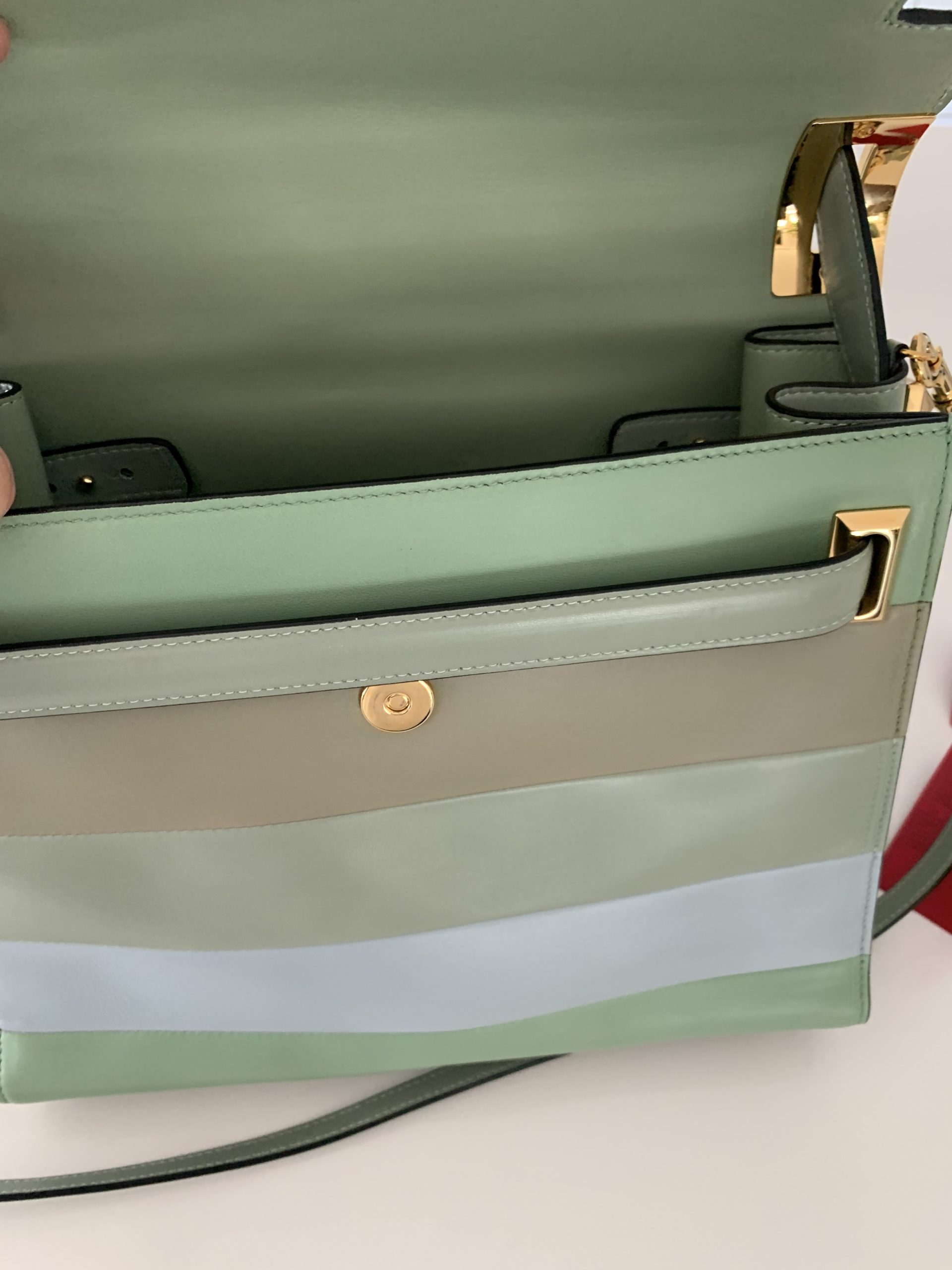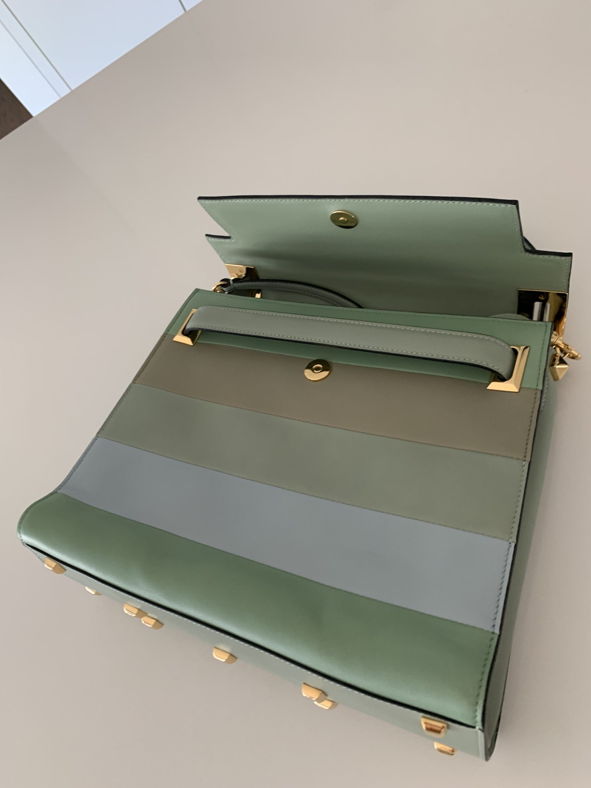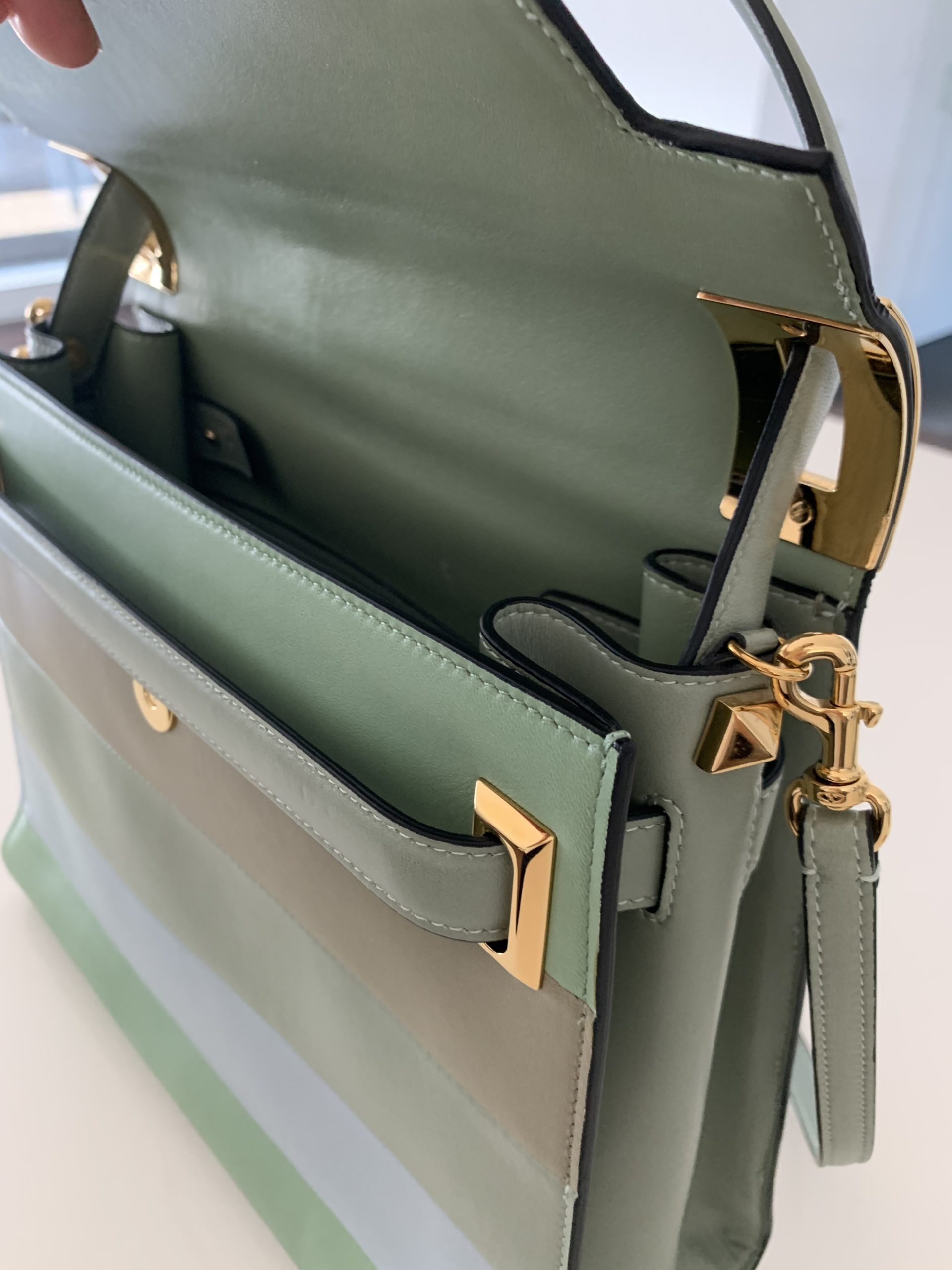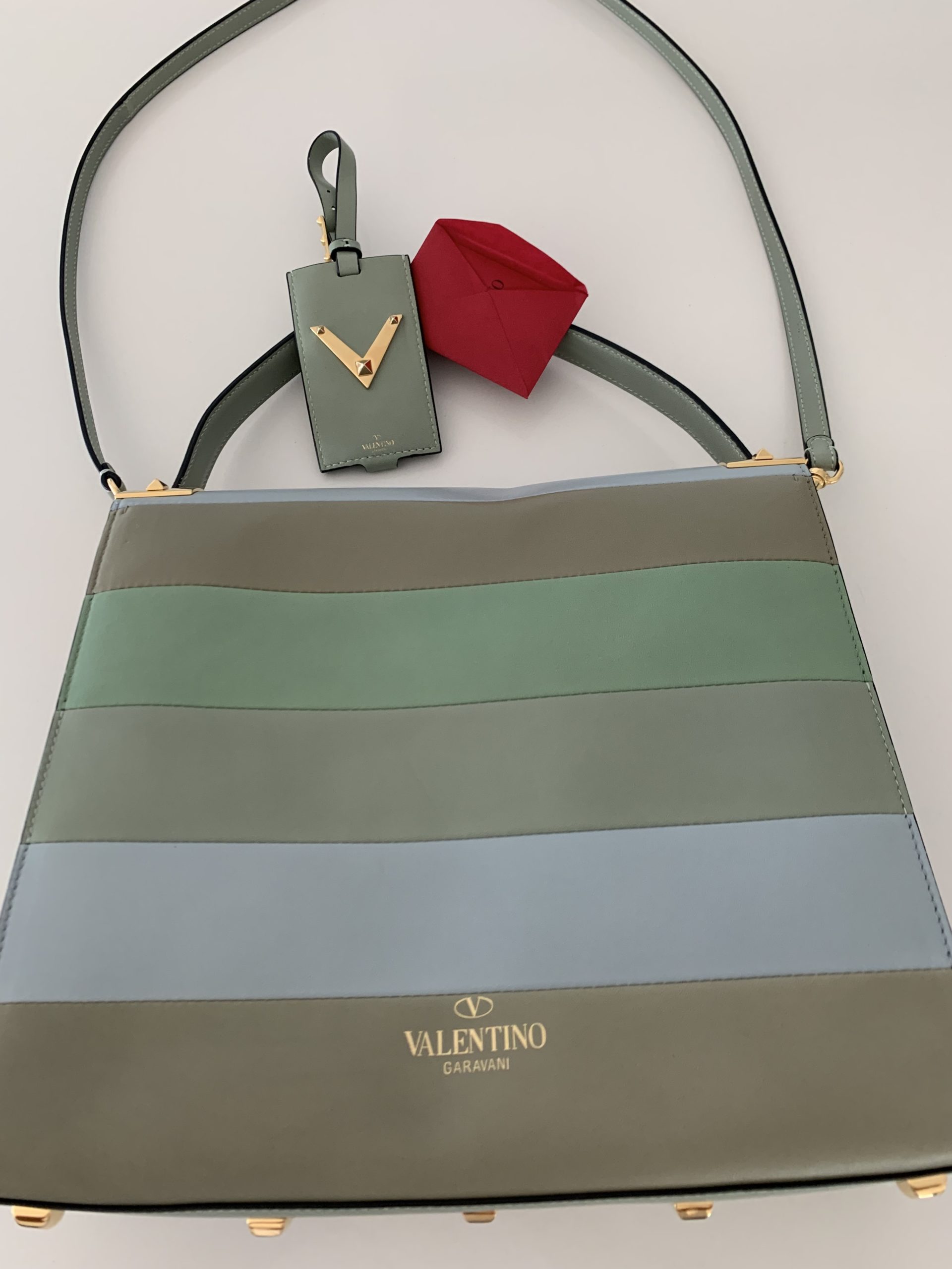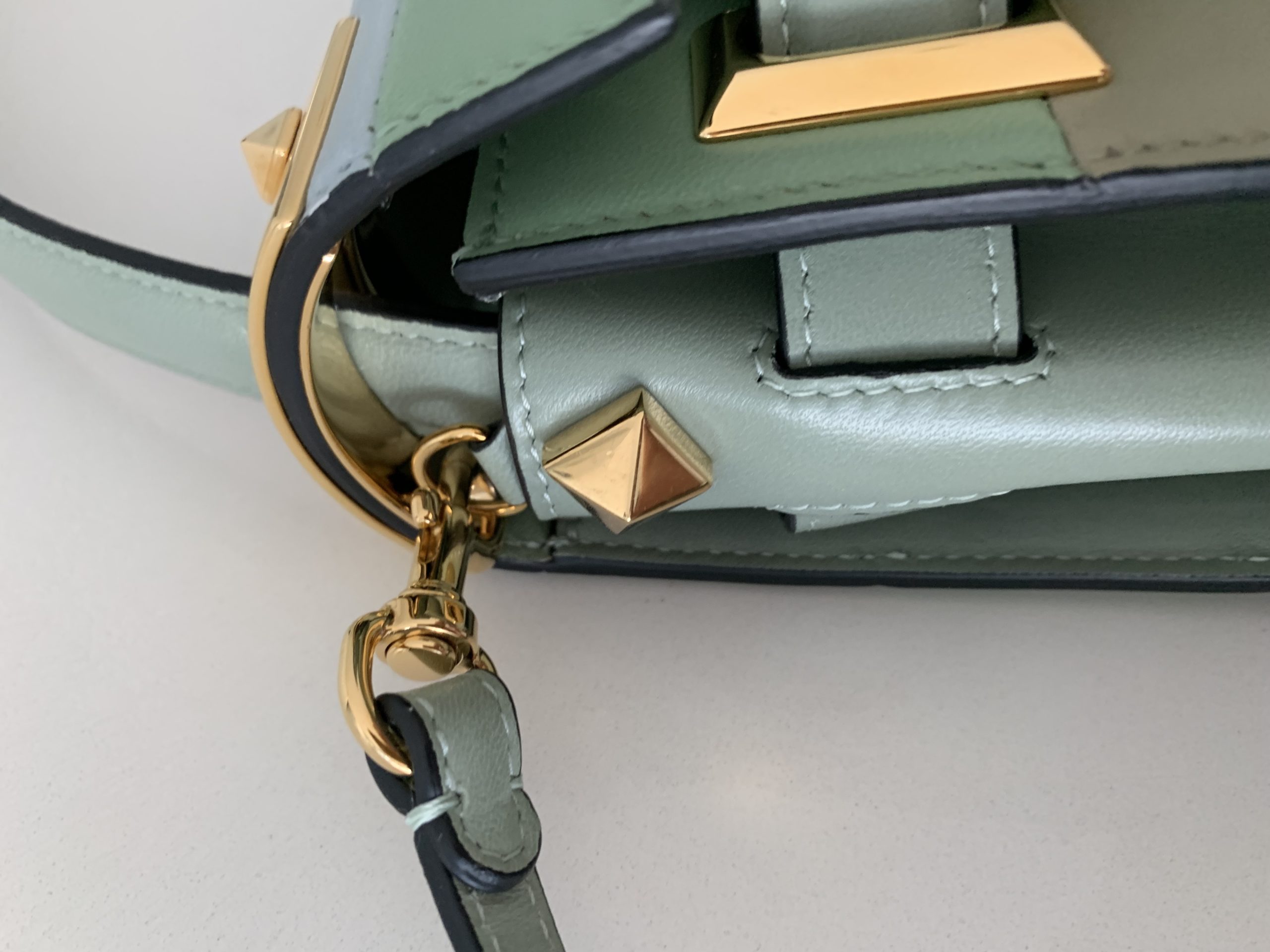 Valentino Garavani My Rockstud neuf, fermeture par rabat, doublure intérieure en cuir, poignée simple et anse amovible permettant un porté main ou épaule, vendu avec porte-nom détachable et dustbag.