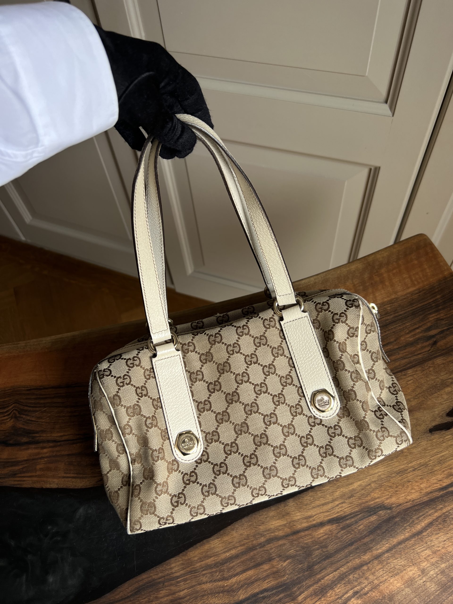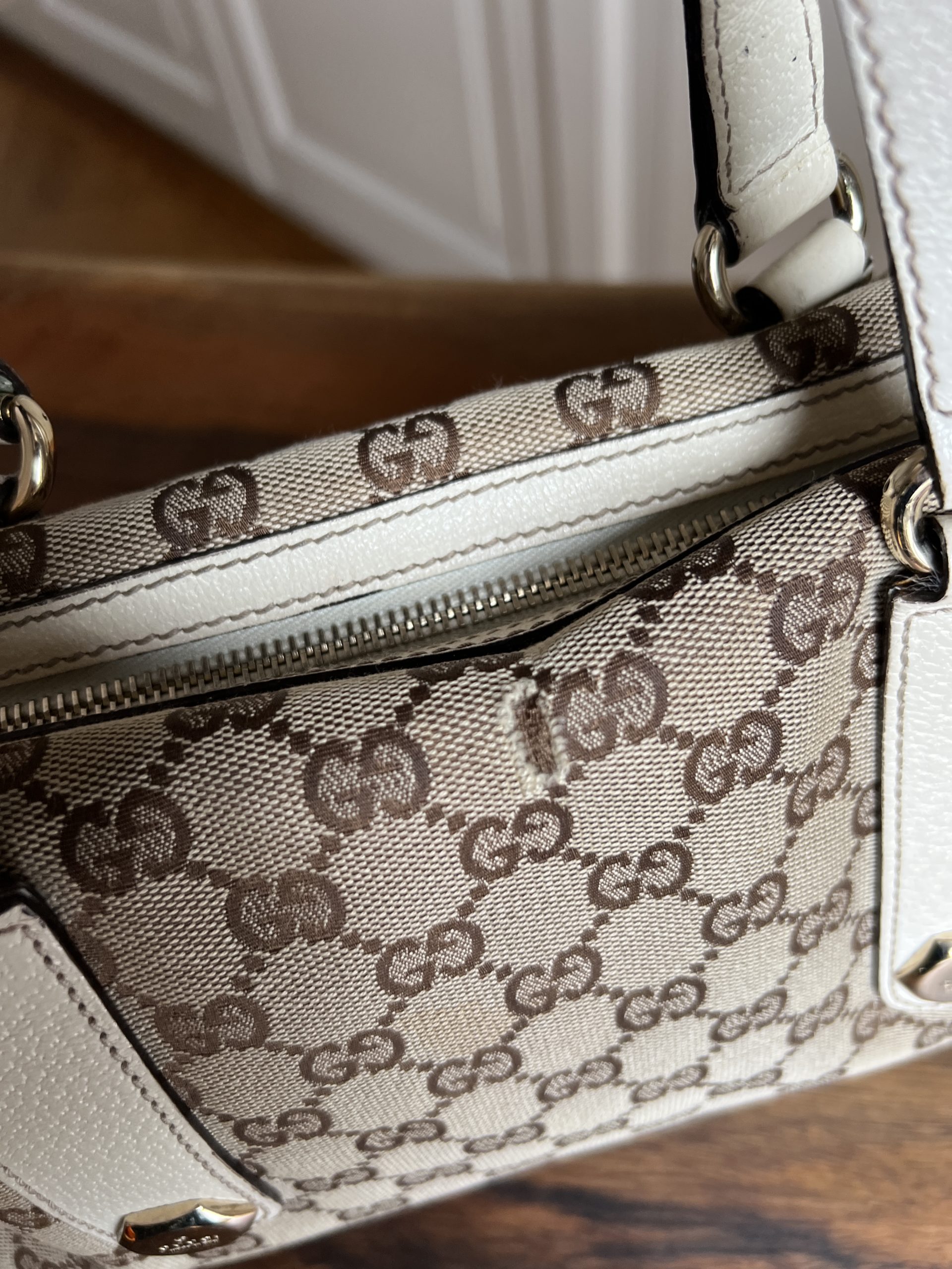 Sac vintage Gucci. Signe d’usure dont un trou (voir photo).